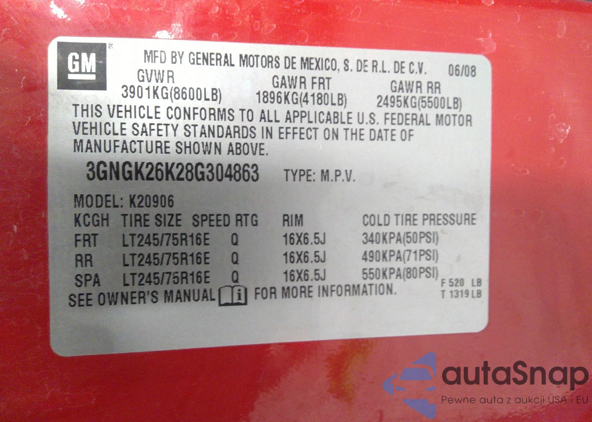 LOT: 37798789 VIN: 3GNGK26K28G304863