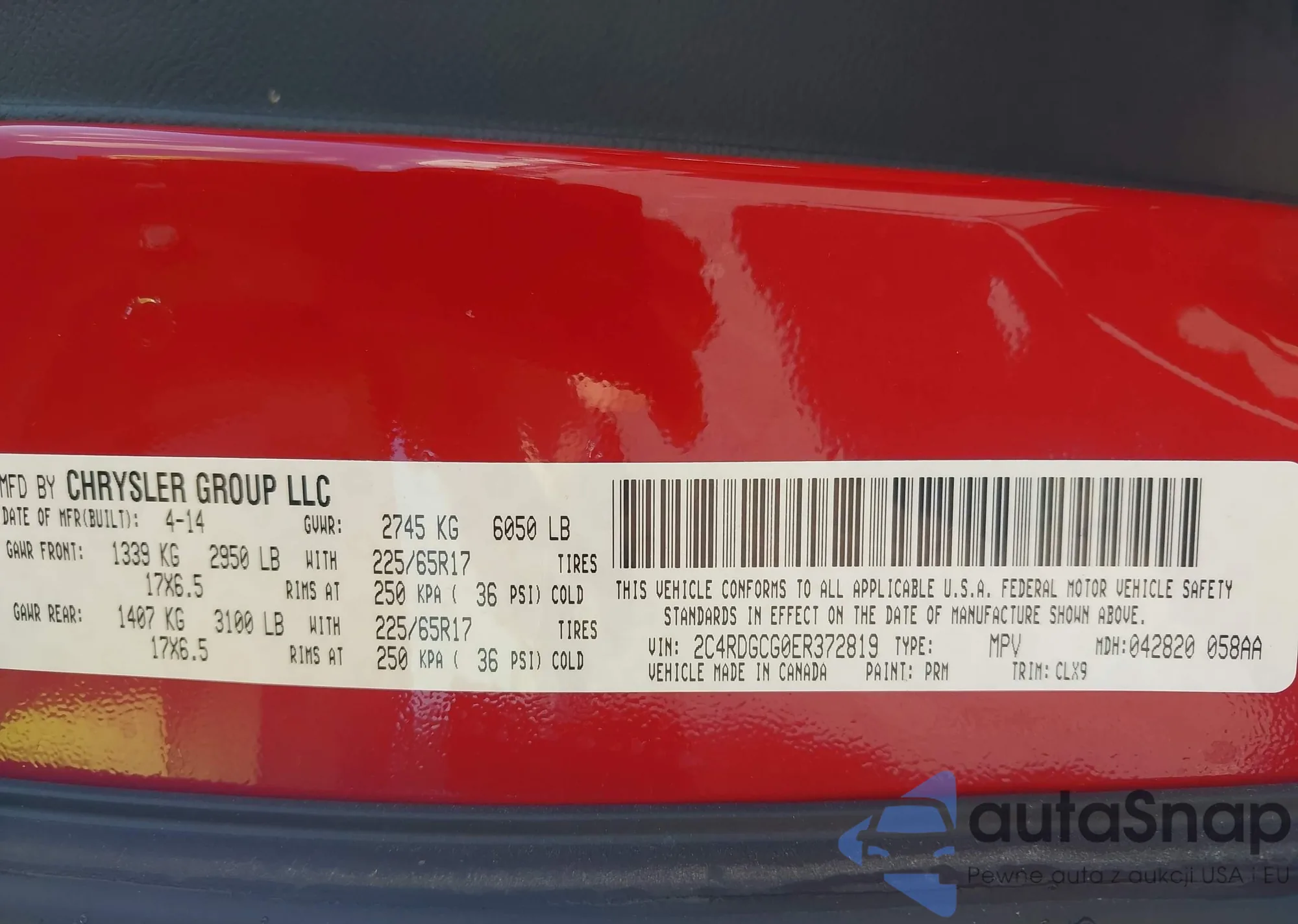 • VIN 2C4RDGCG0ER372819