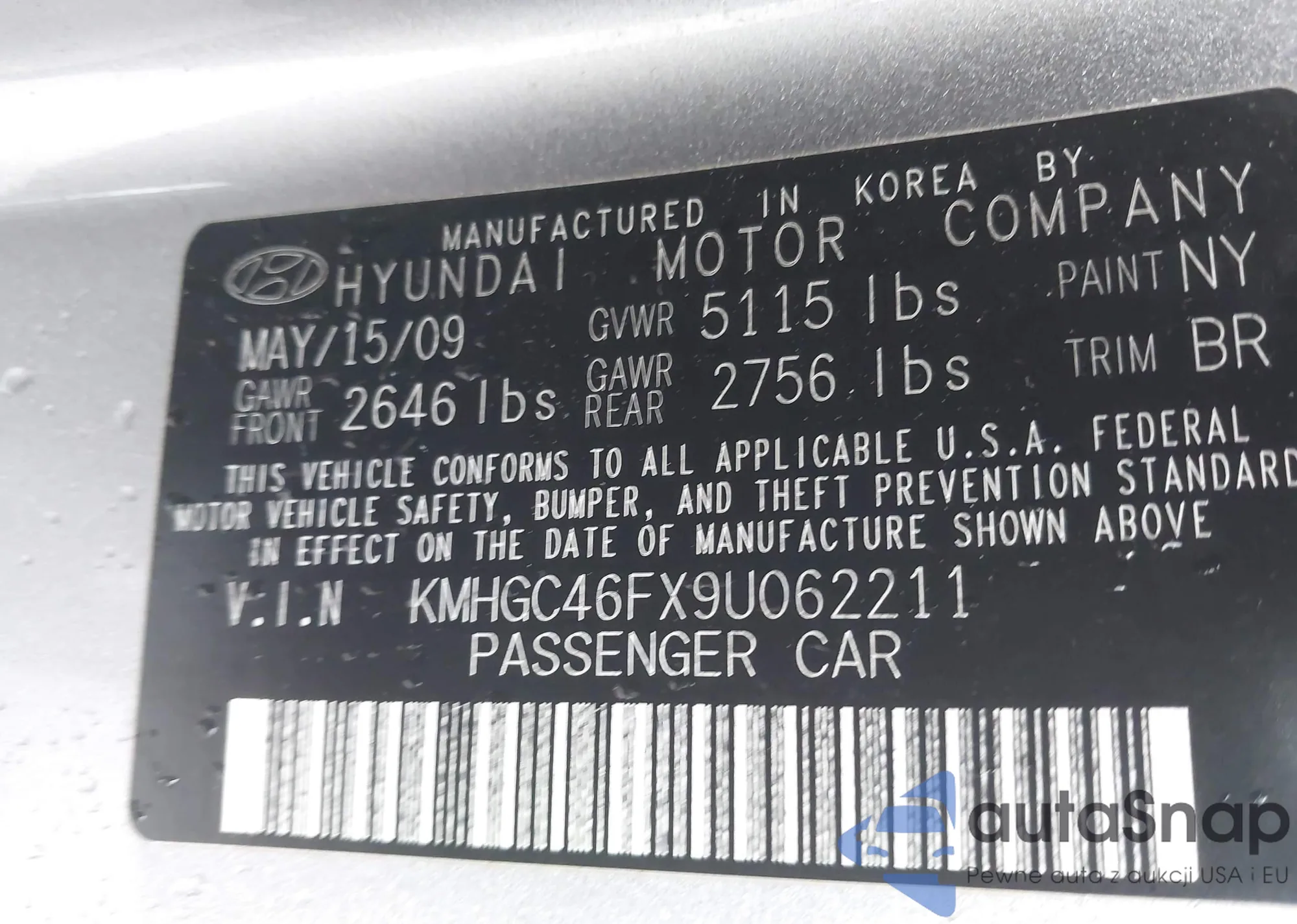 • VIN KMHGC46FX9U062211