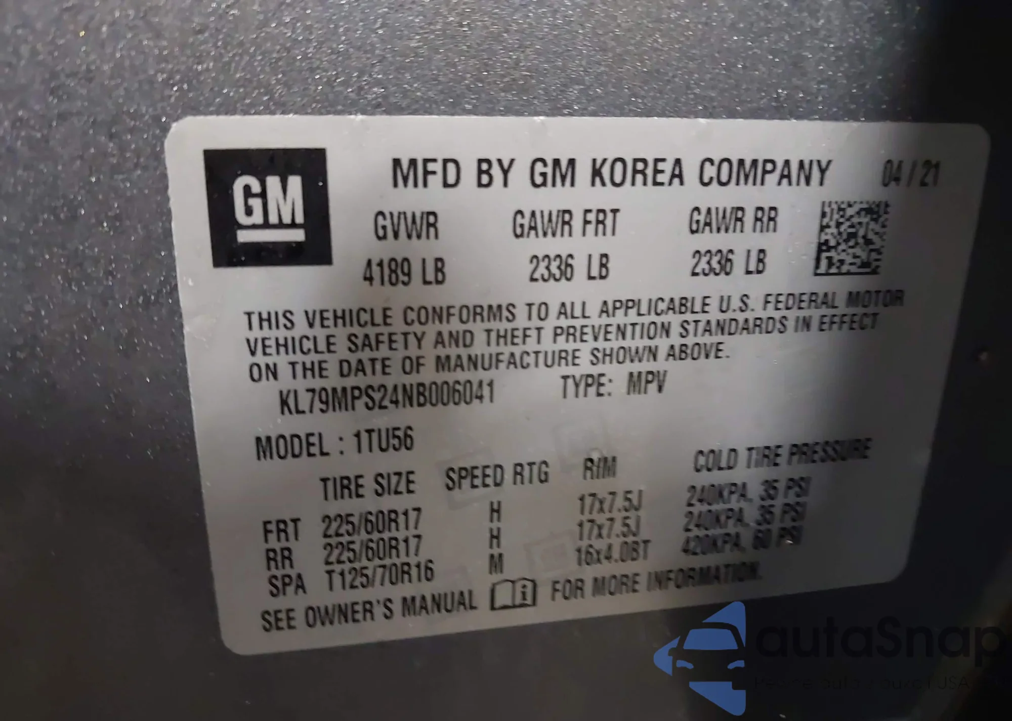 • VIN KL79MPS24NB006041
