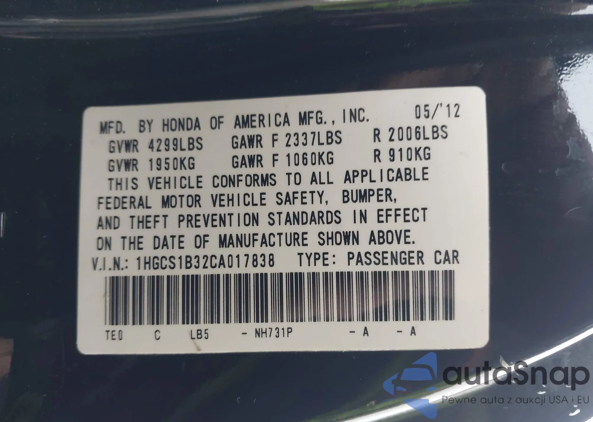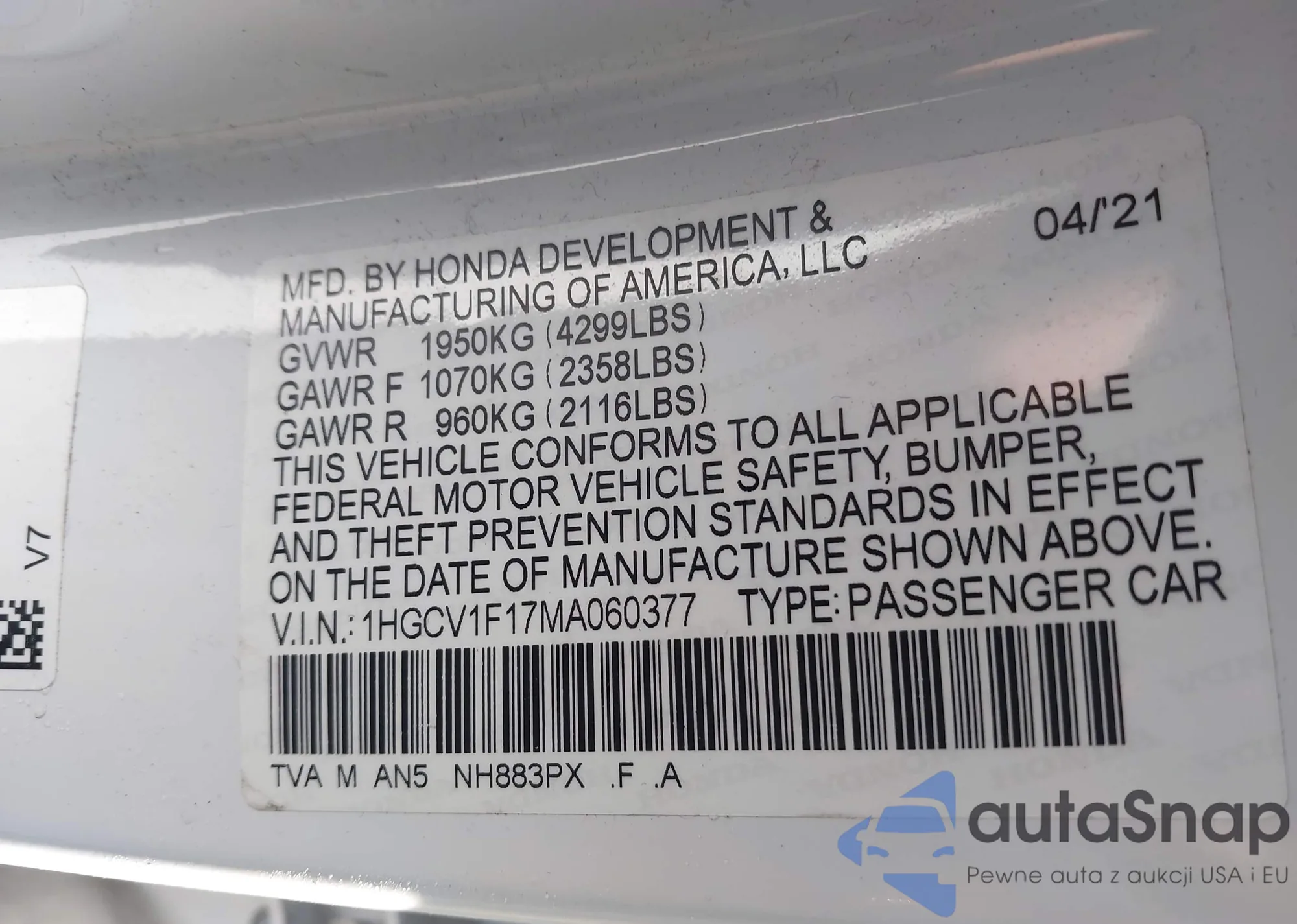 • VIN 1HGCV1F17MA060377