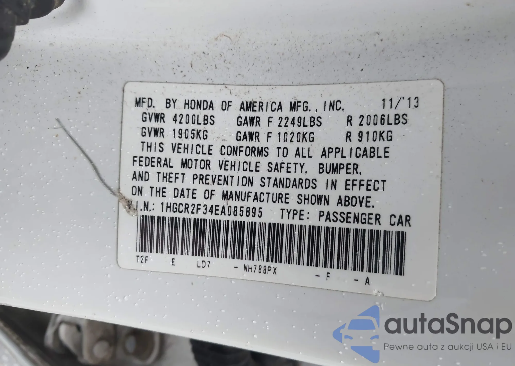 • VIN 1HGCR2F34EA085895