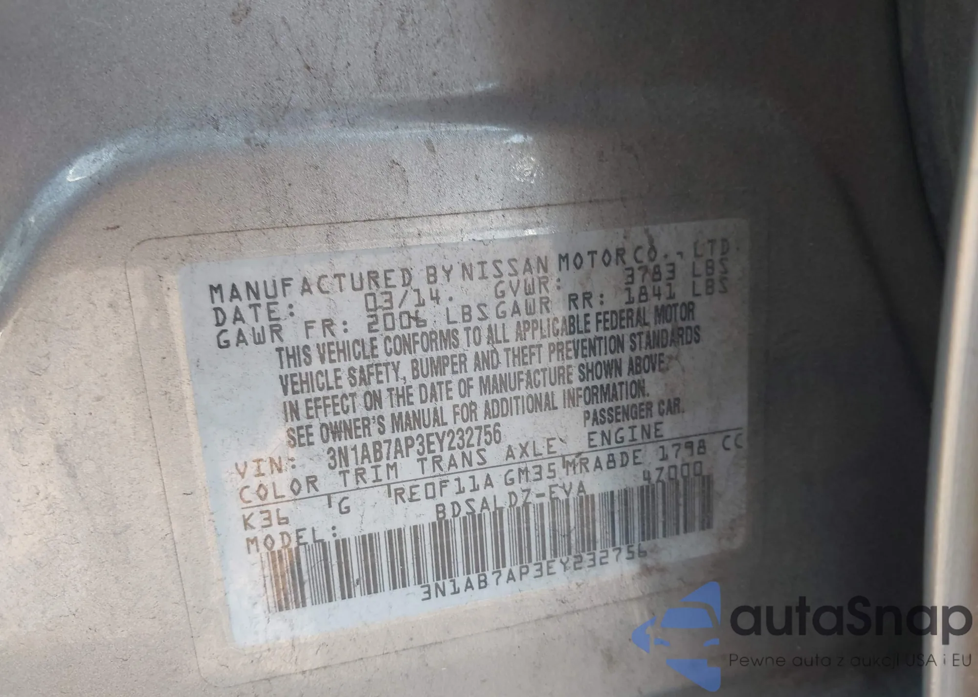• VIN 3N1AB7AP3EY232756