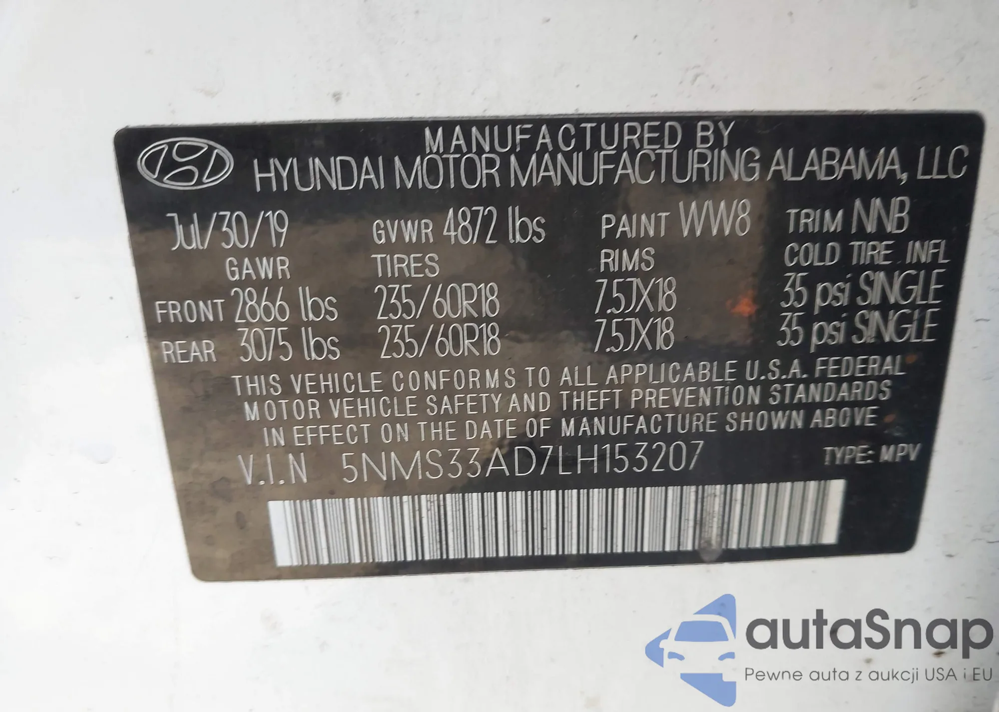 • VIN 5NMS33AD7LH153207