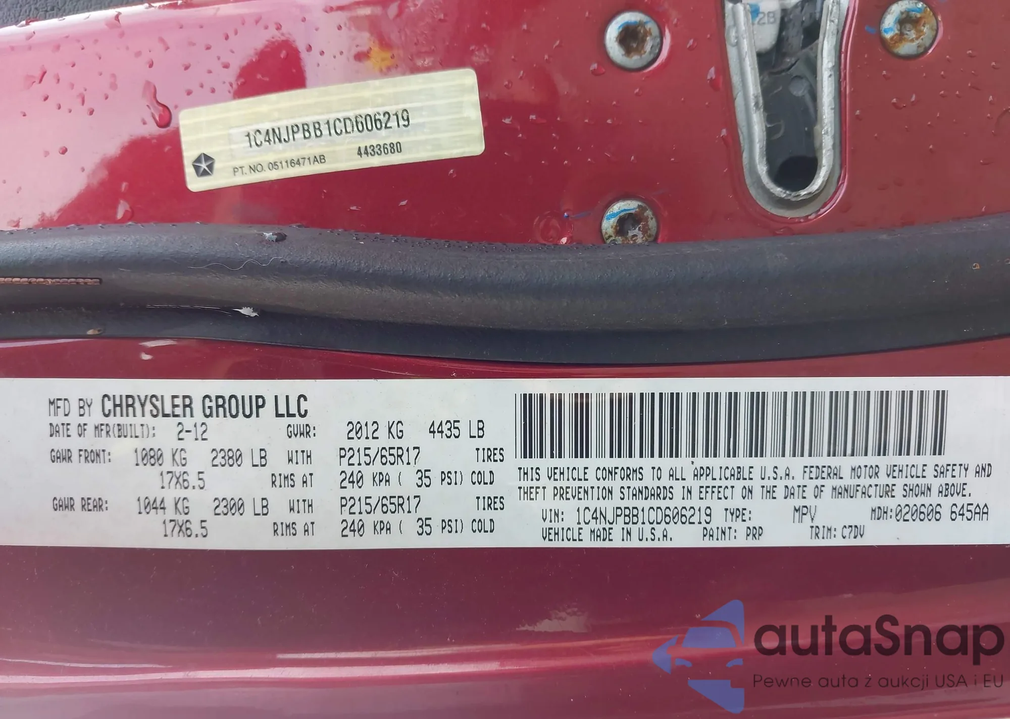 • VIN 1HGCP3F8XCA002538