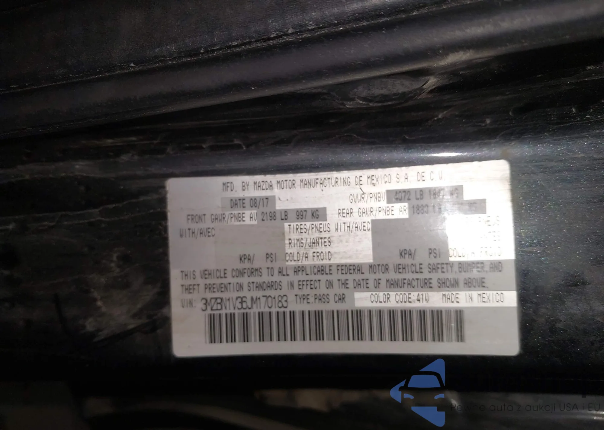 LOT: 43795973 VIN: 3MZBN1V36JM170183