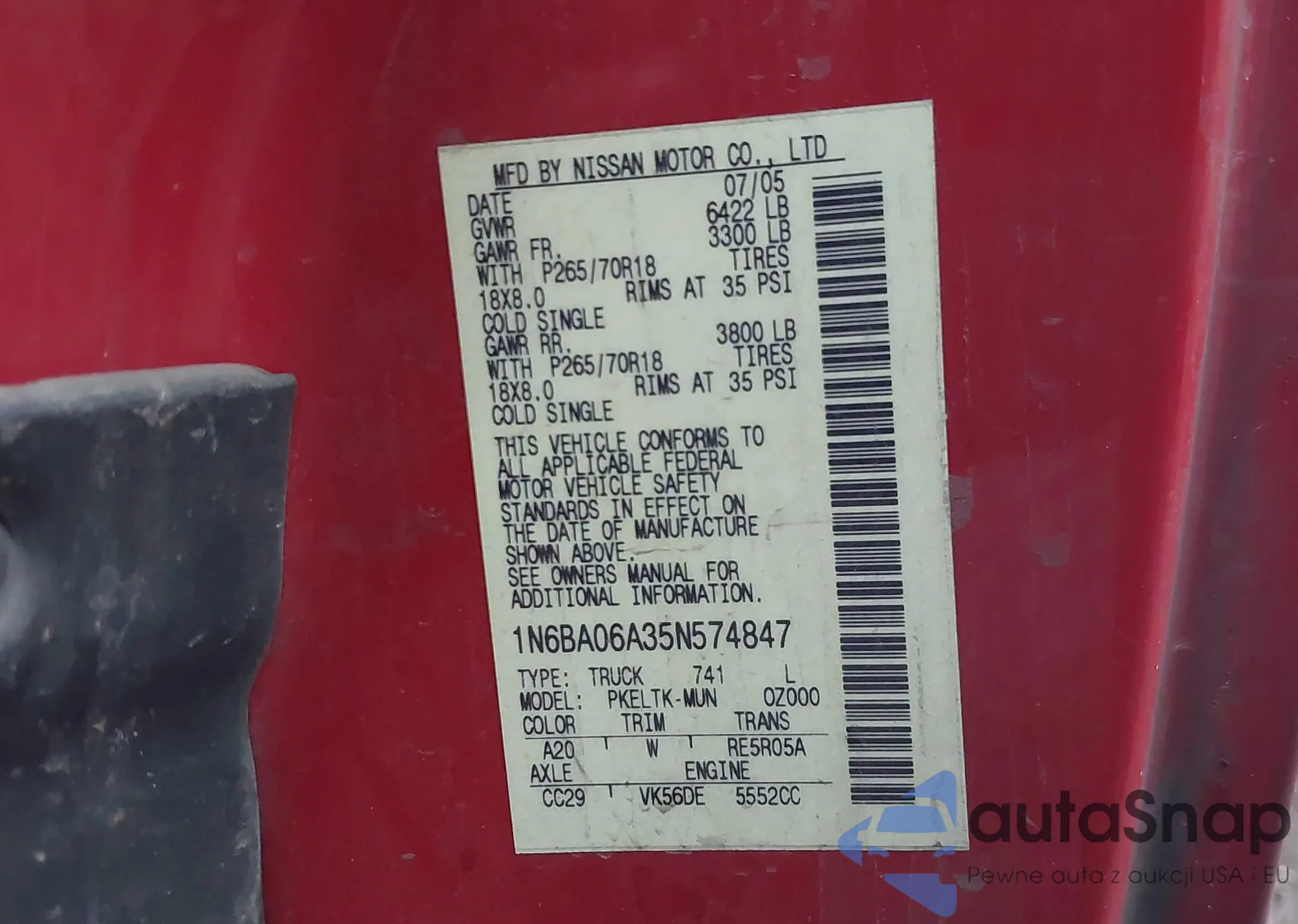 • VIN 1N6BA06A35N574847