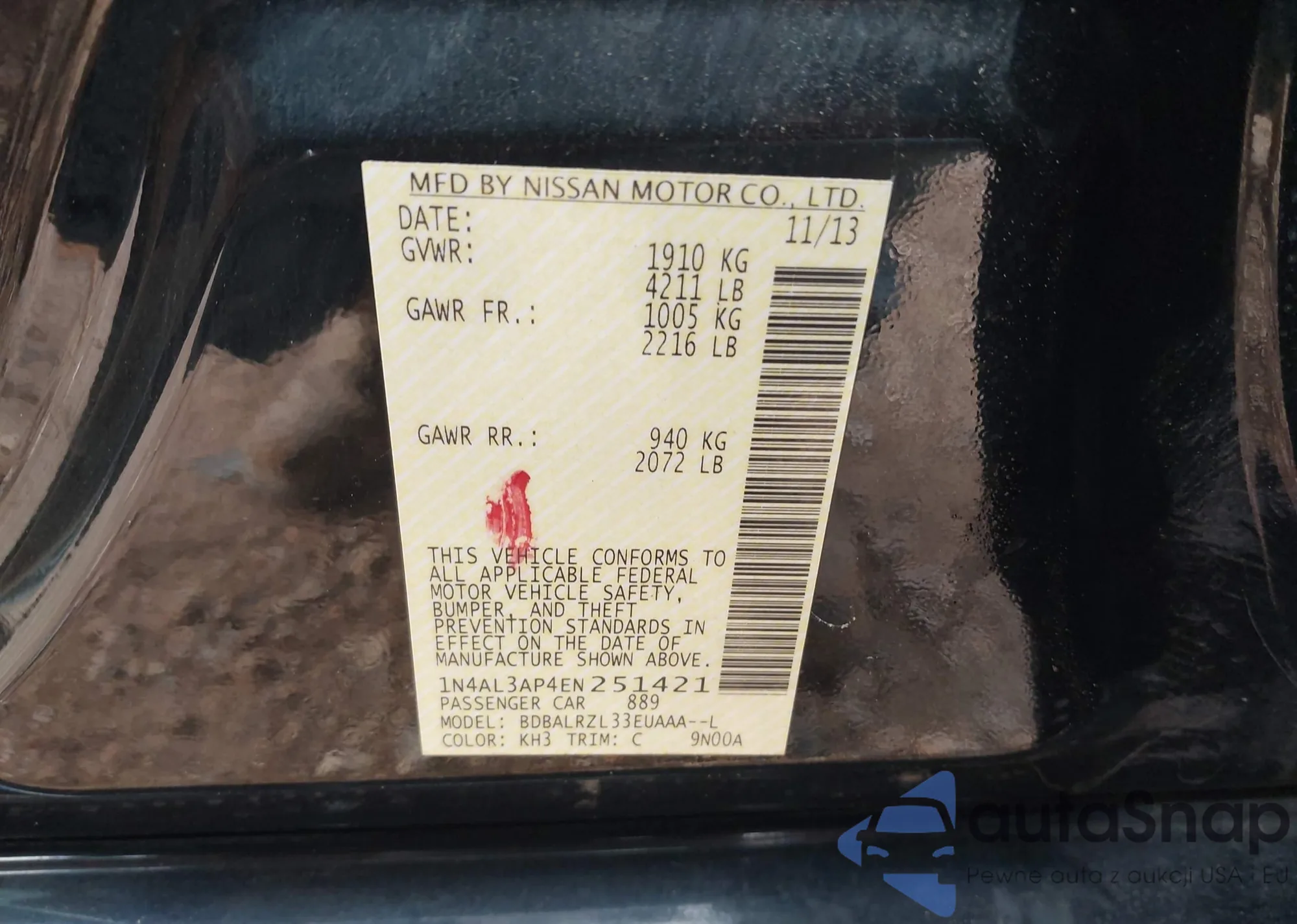 • VIN 1N4AL3AP4EN251421