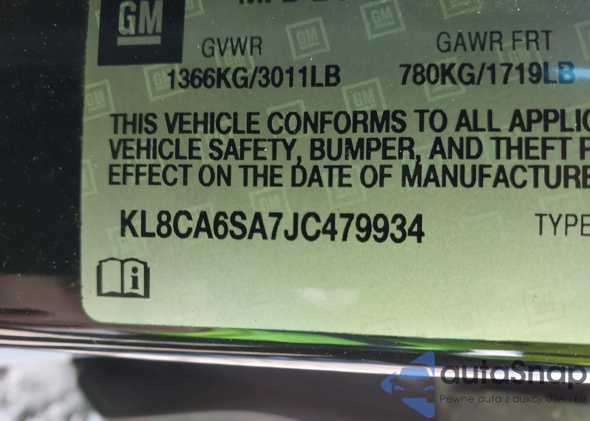 LOT: 43804859 VIN: 1G1BE5SM3J7218197