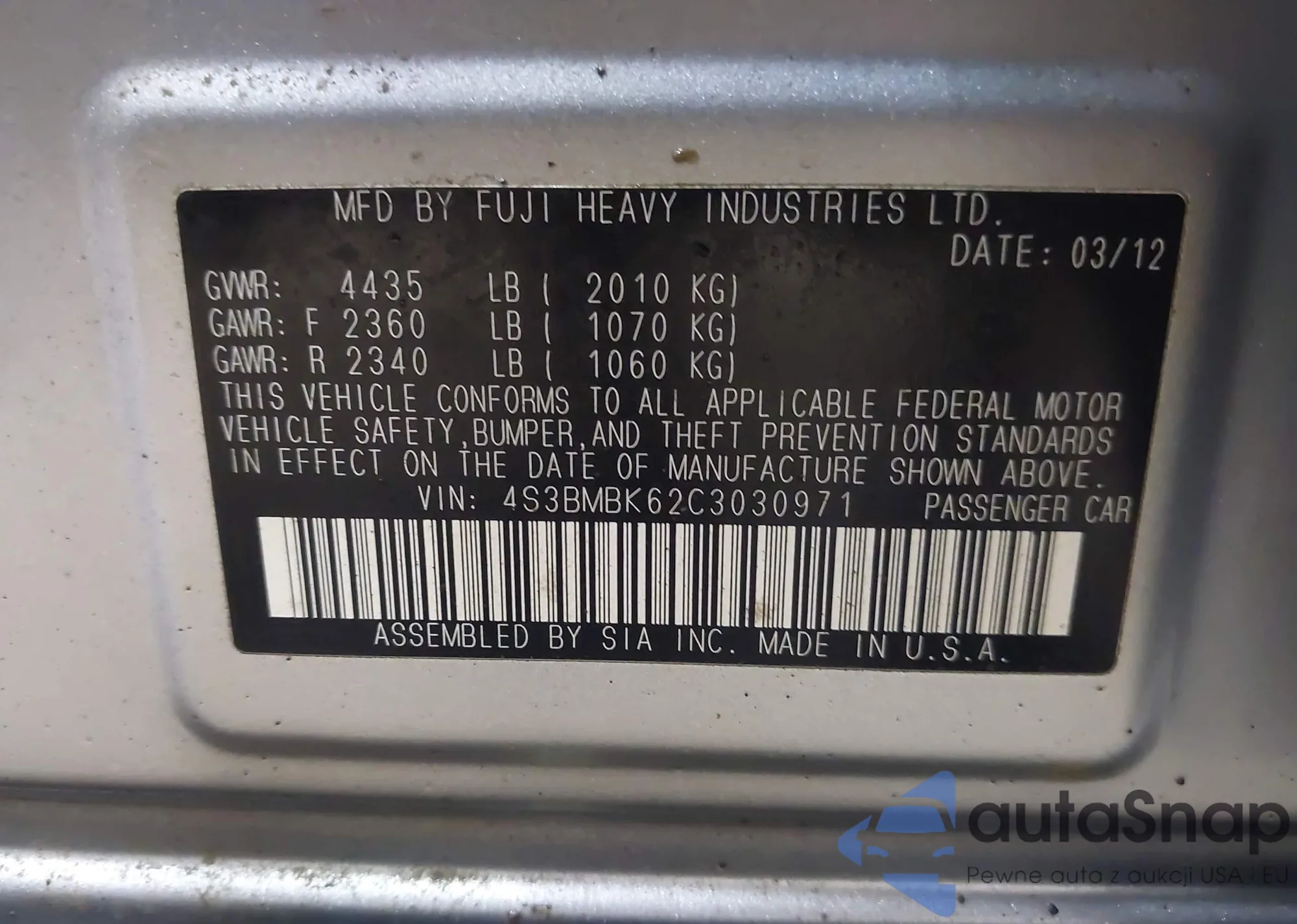 LOT: 43869501 VIN: JM3KFBDY6S0538523