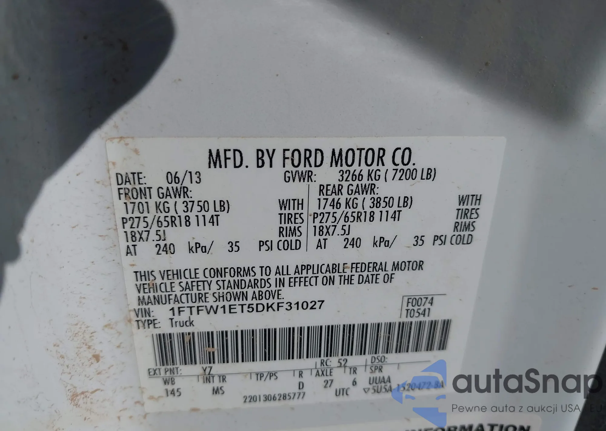 • VIN 1FTFW1ET5DKF31027
