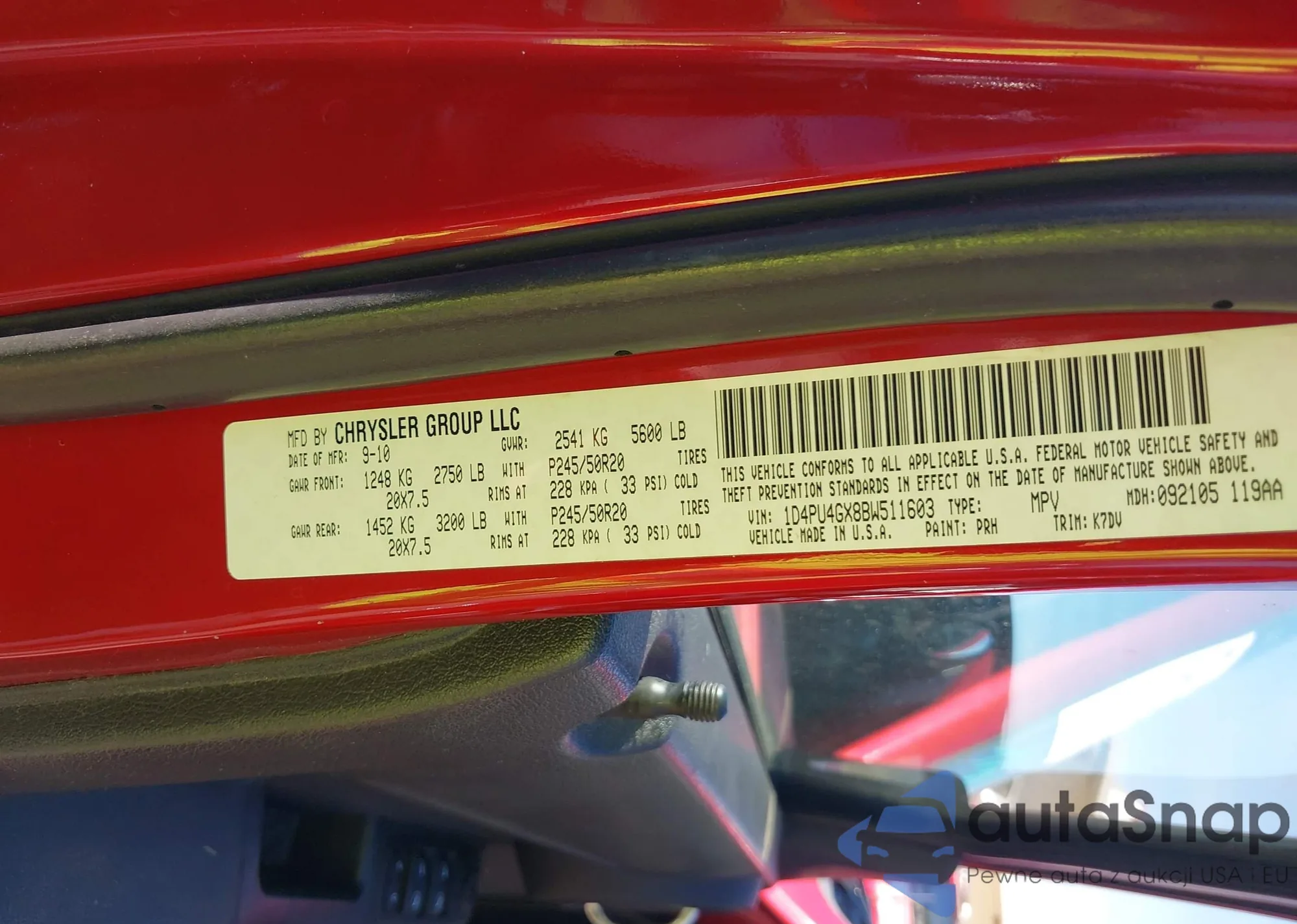 LOT: 43727801 VIN: 1D4PU4GX8BW511603