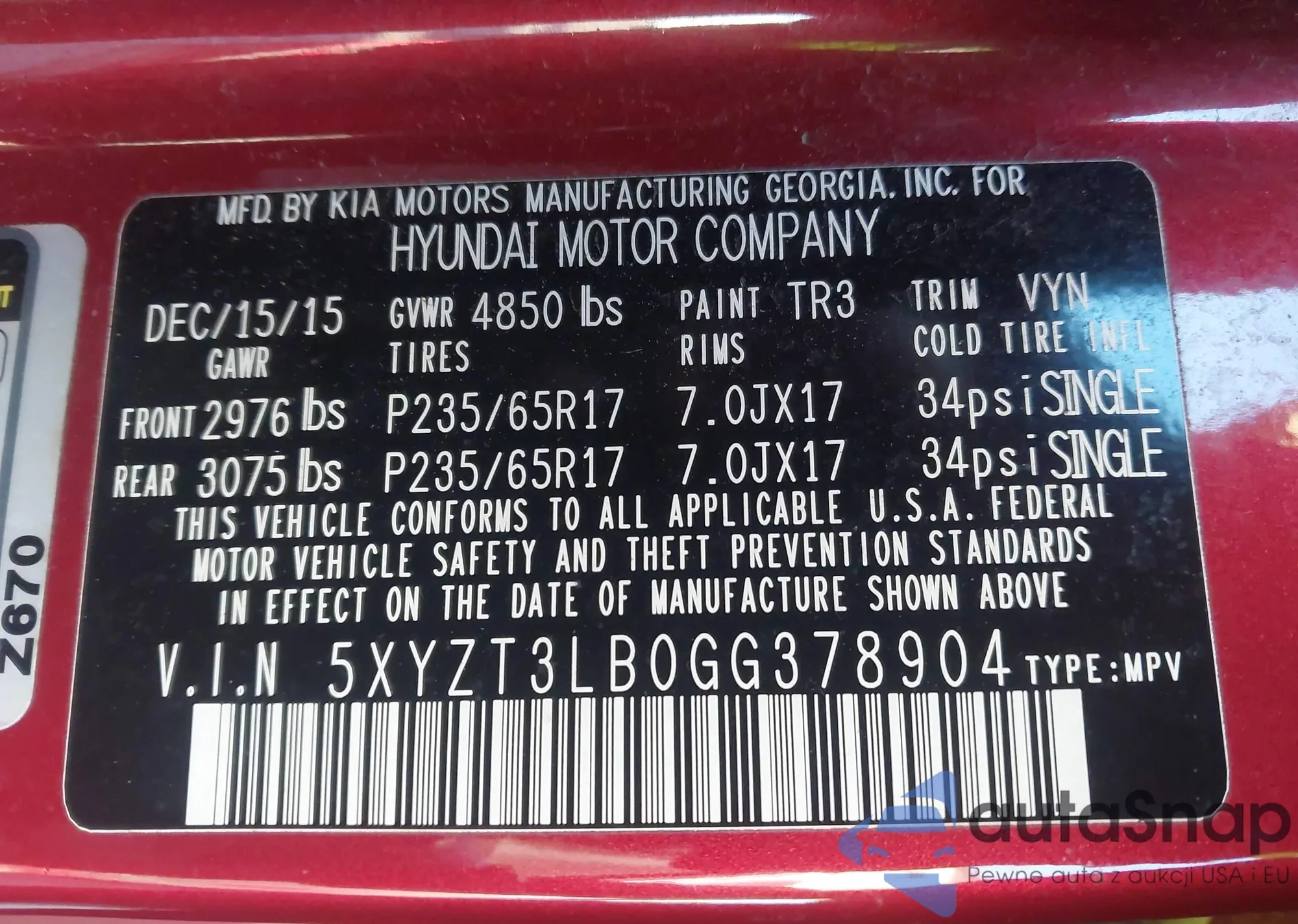 • VIN 5XYZT3LB0GG378904