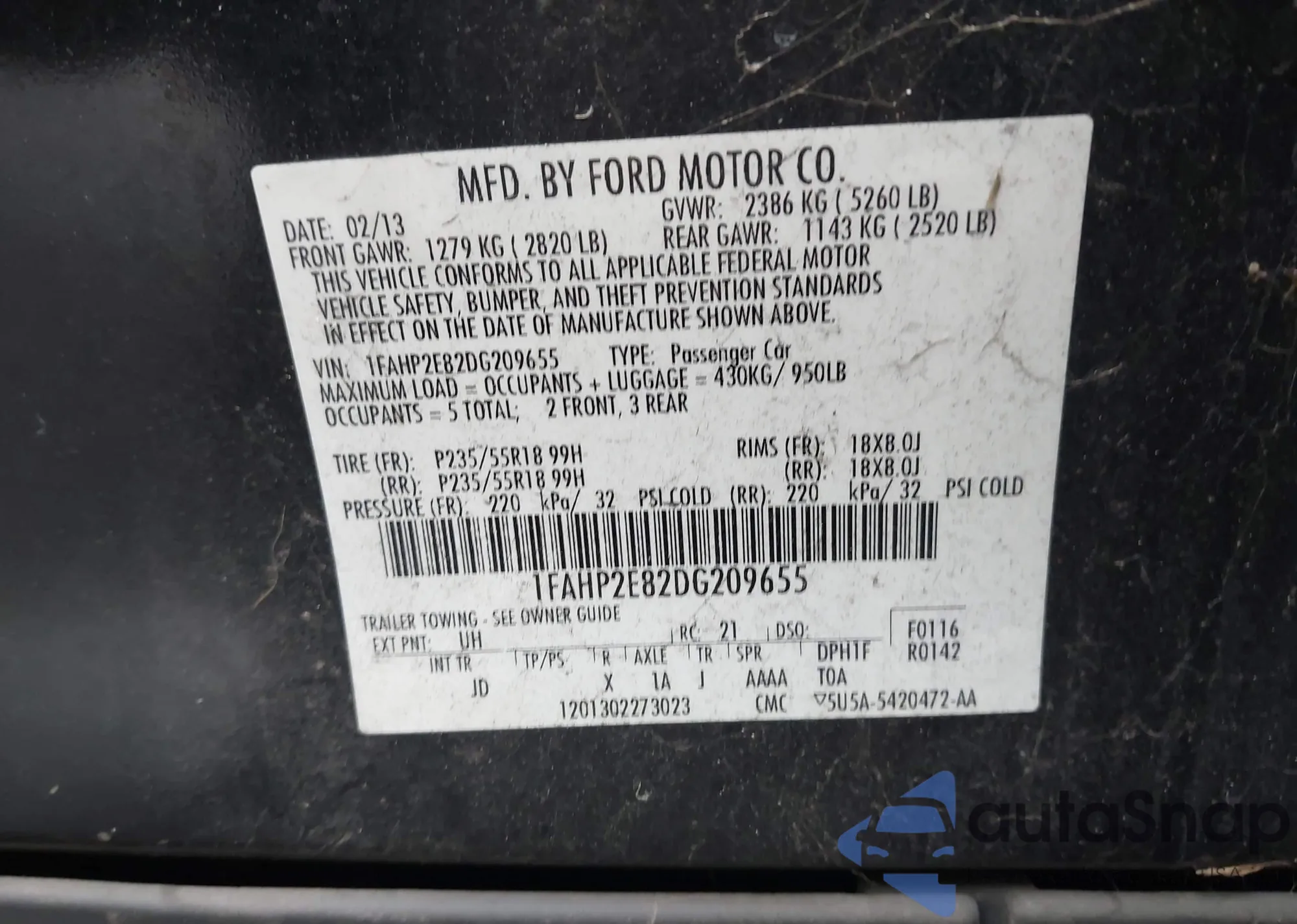 • VIN 2G11X5SA6G9183710
