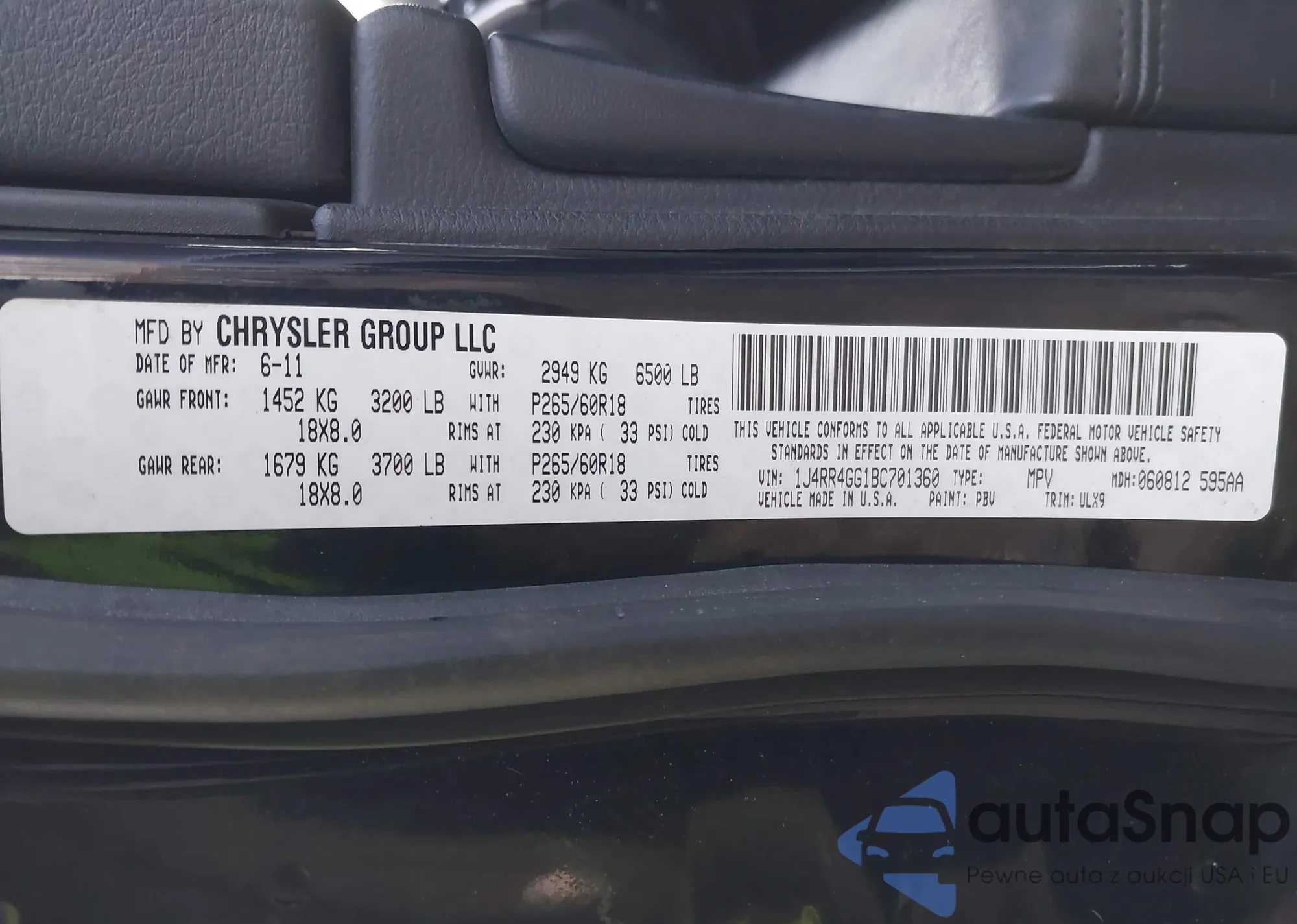• VIN 1J4RR4GG1BC701360