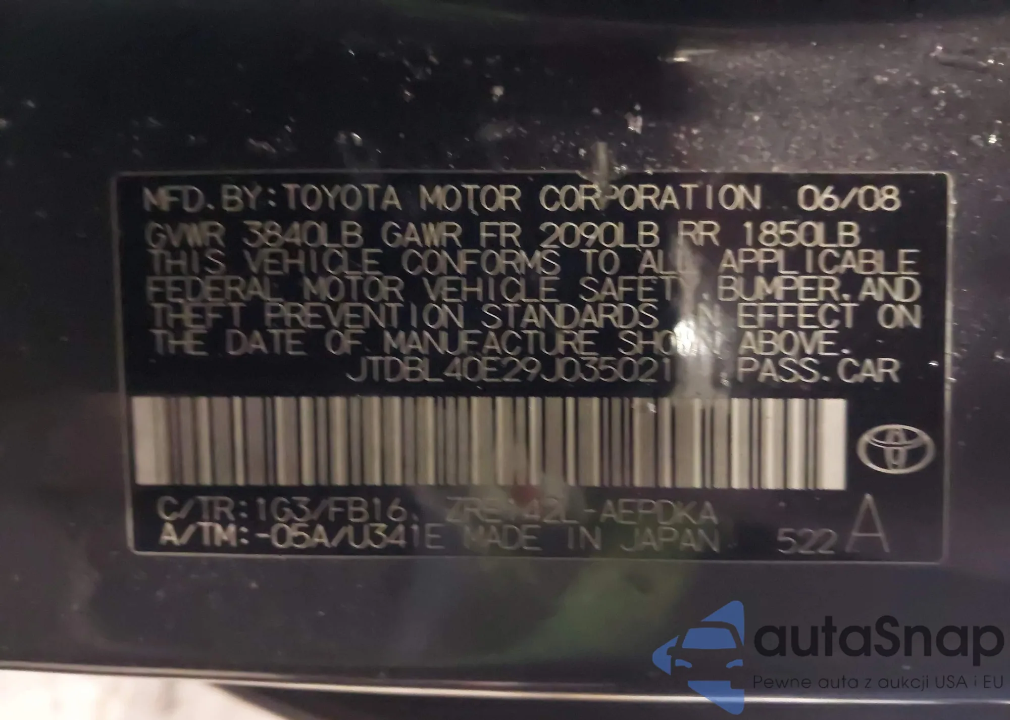 • VIN 5J6RE4H52BL067744
