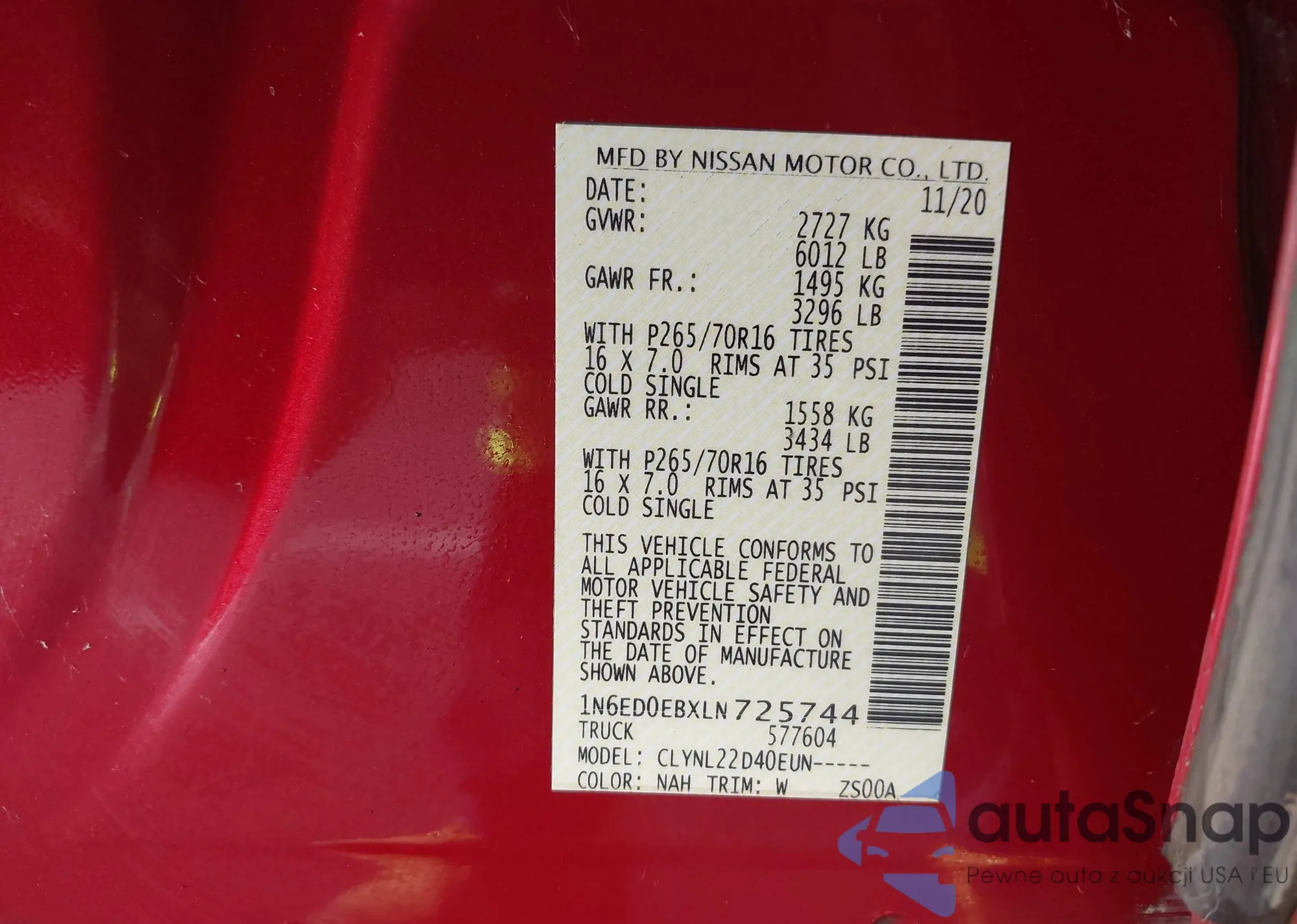 • VIN 1N6ED0EBXLN725744
