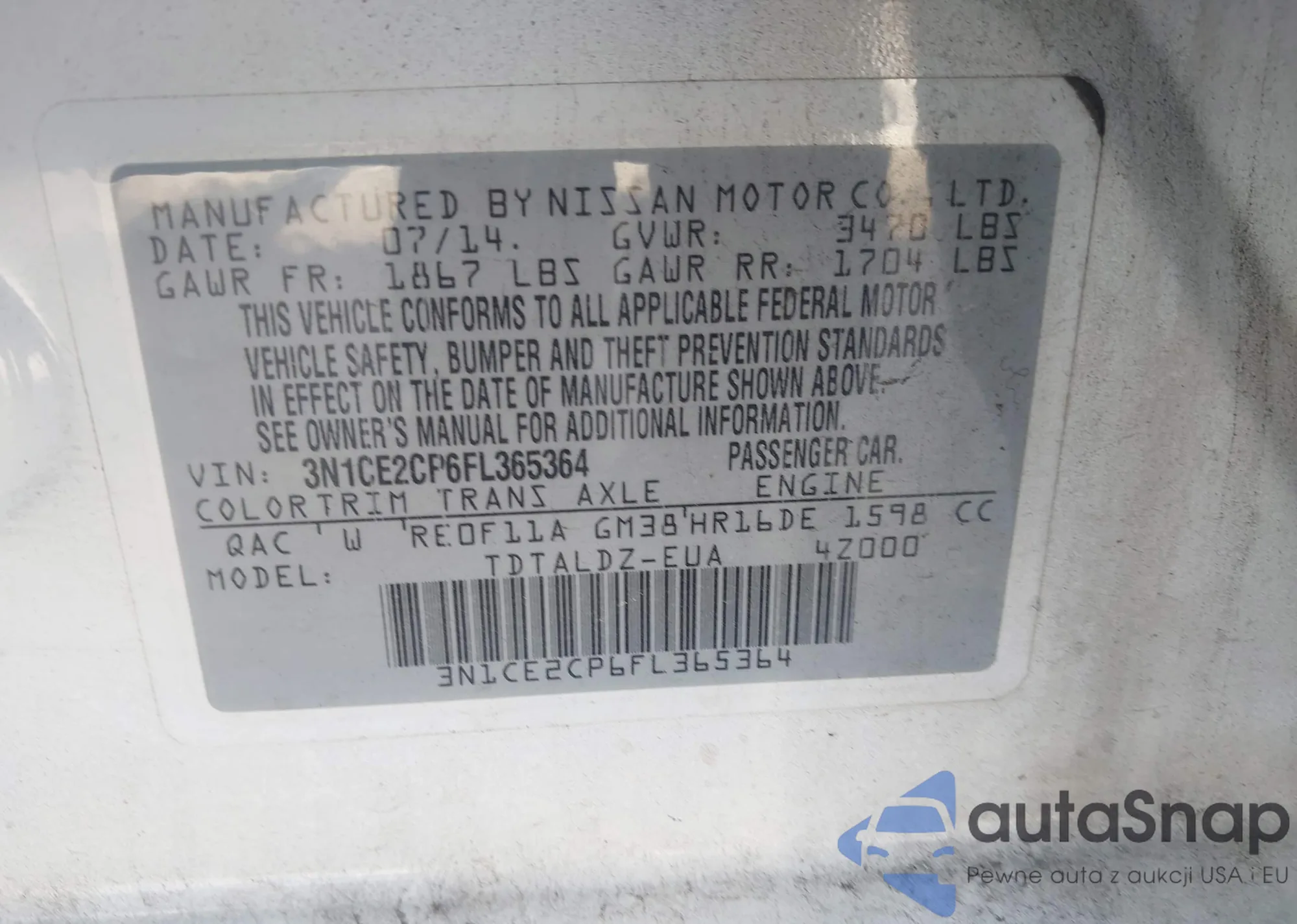 • VIN 3N1CE2CP6FL365364
