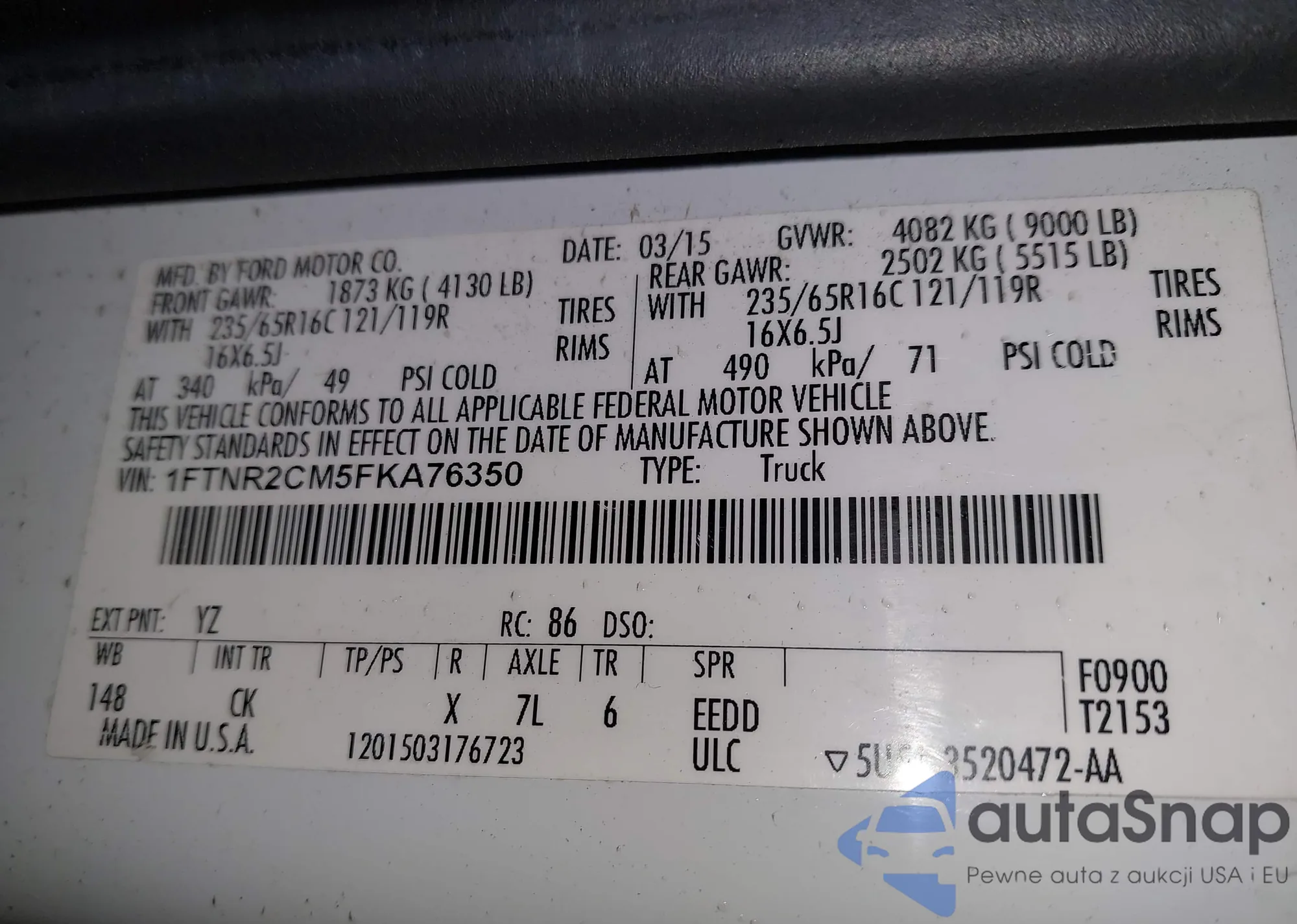 LOT: 43884228 VIN: 1FTNR2CM5FKA76350