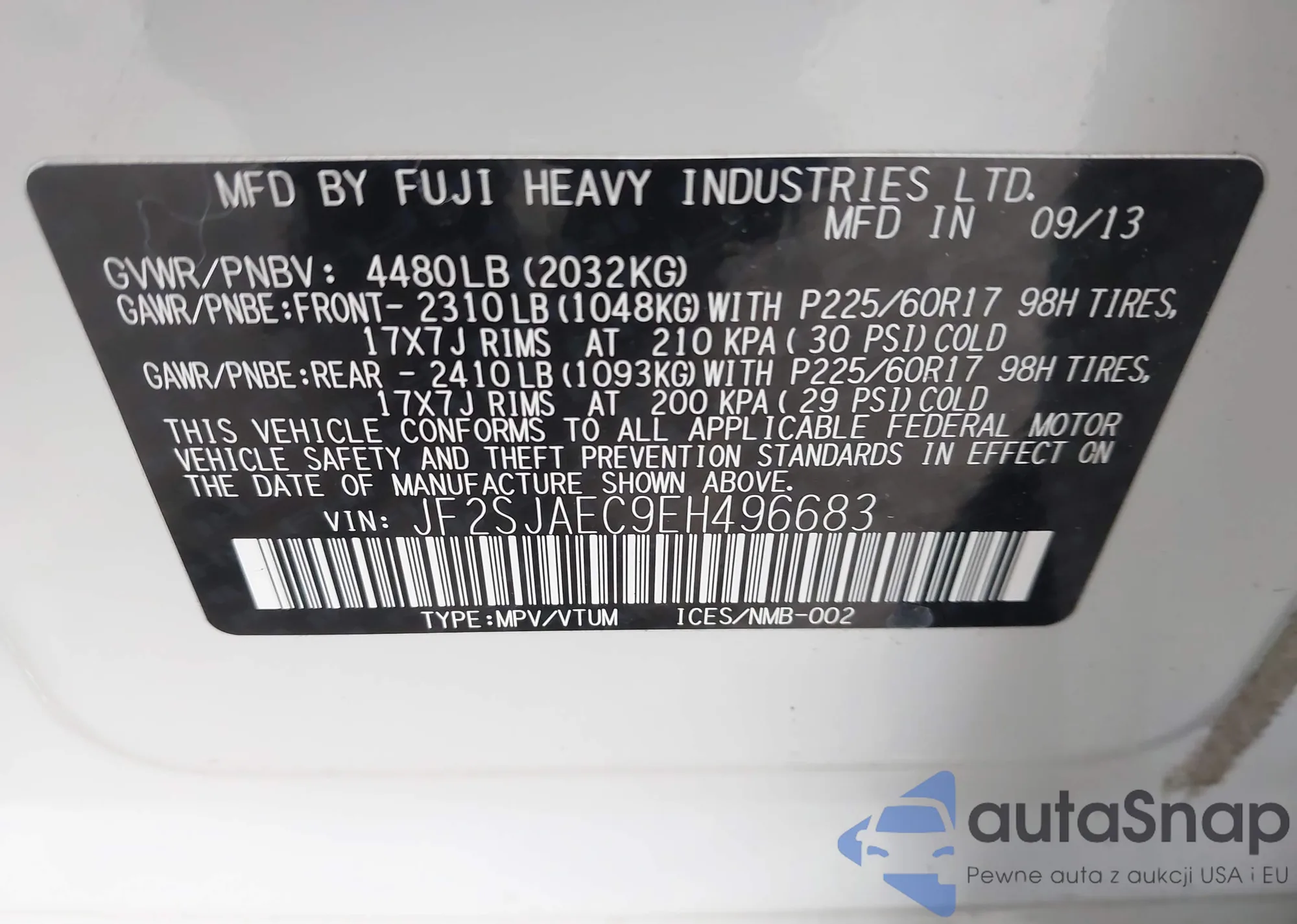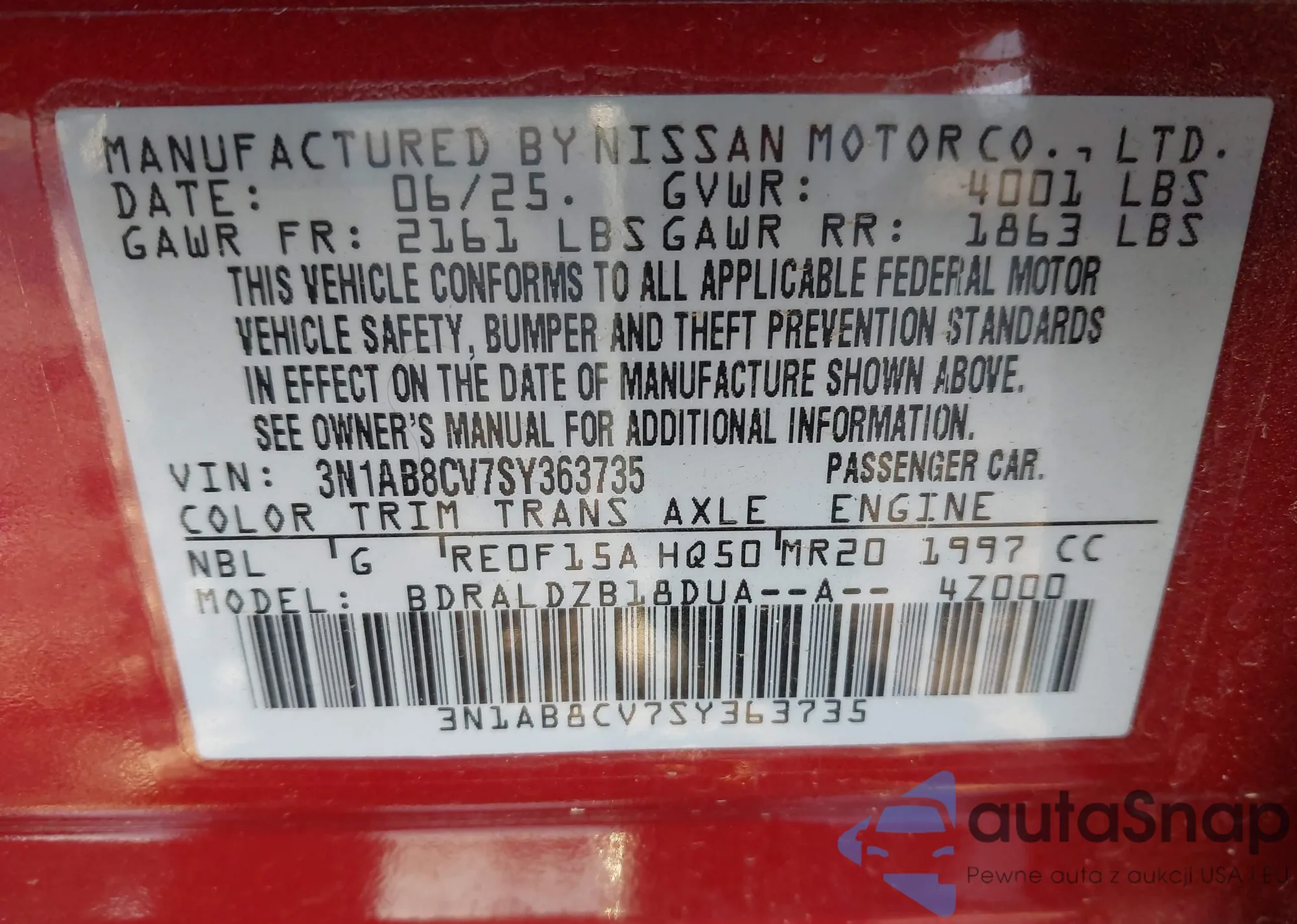 • VIN 3N1AB8DV8SY367582