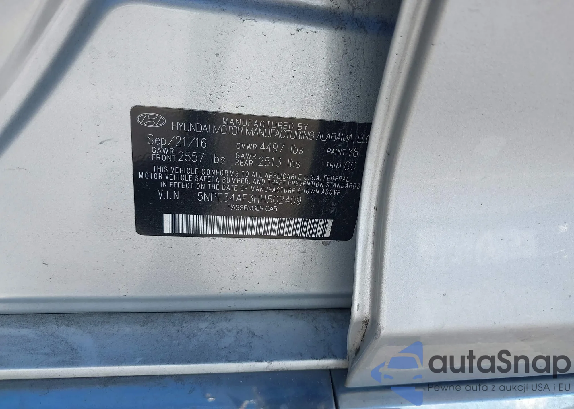 • VIN 5NPE34AF3HH502409