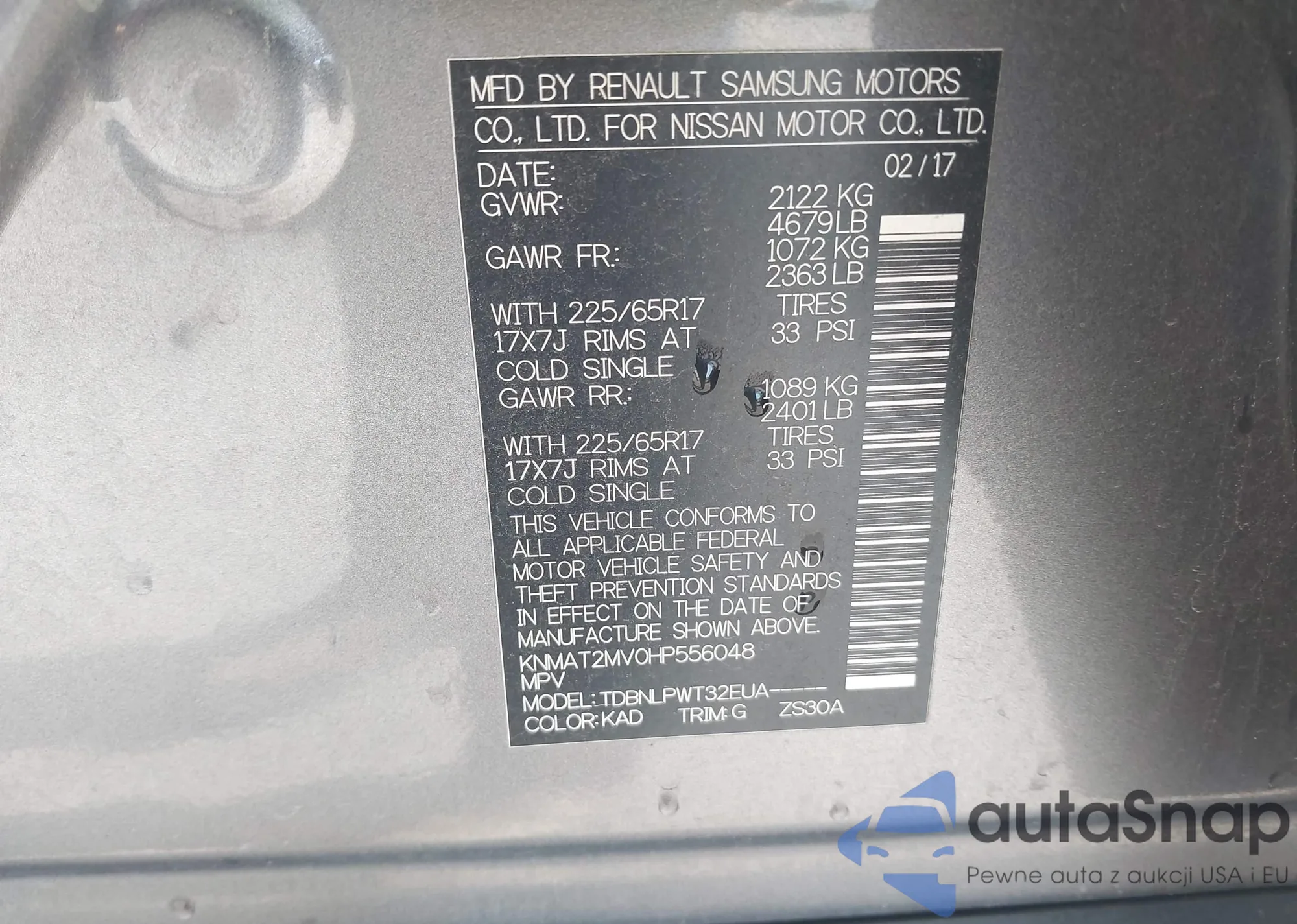 • VIN KNMAT2MV0HP556048