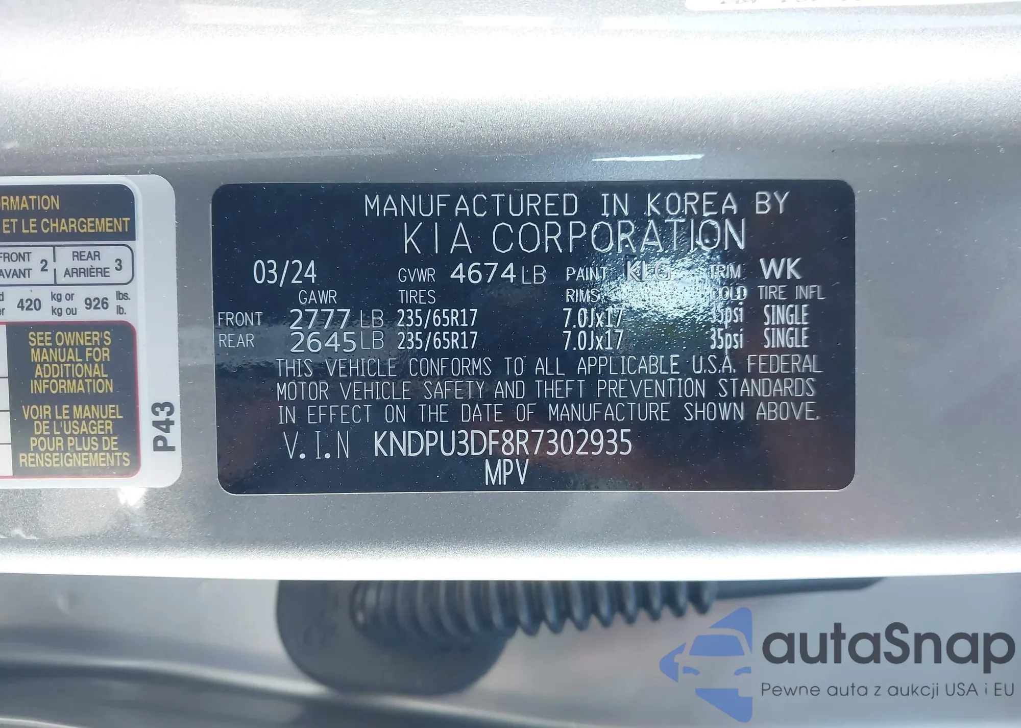 • VIN KNDPU3DF8R7302935