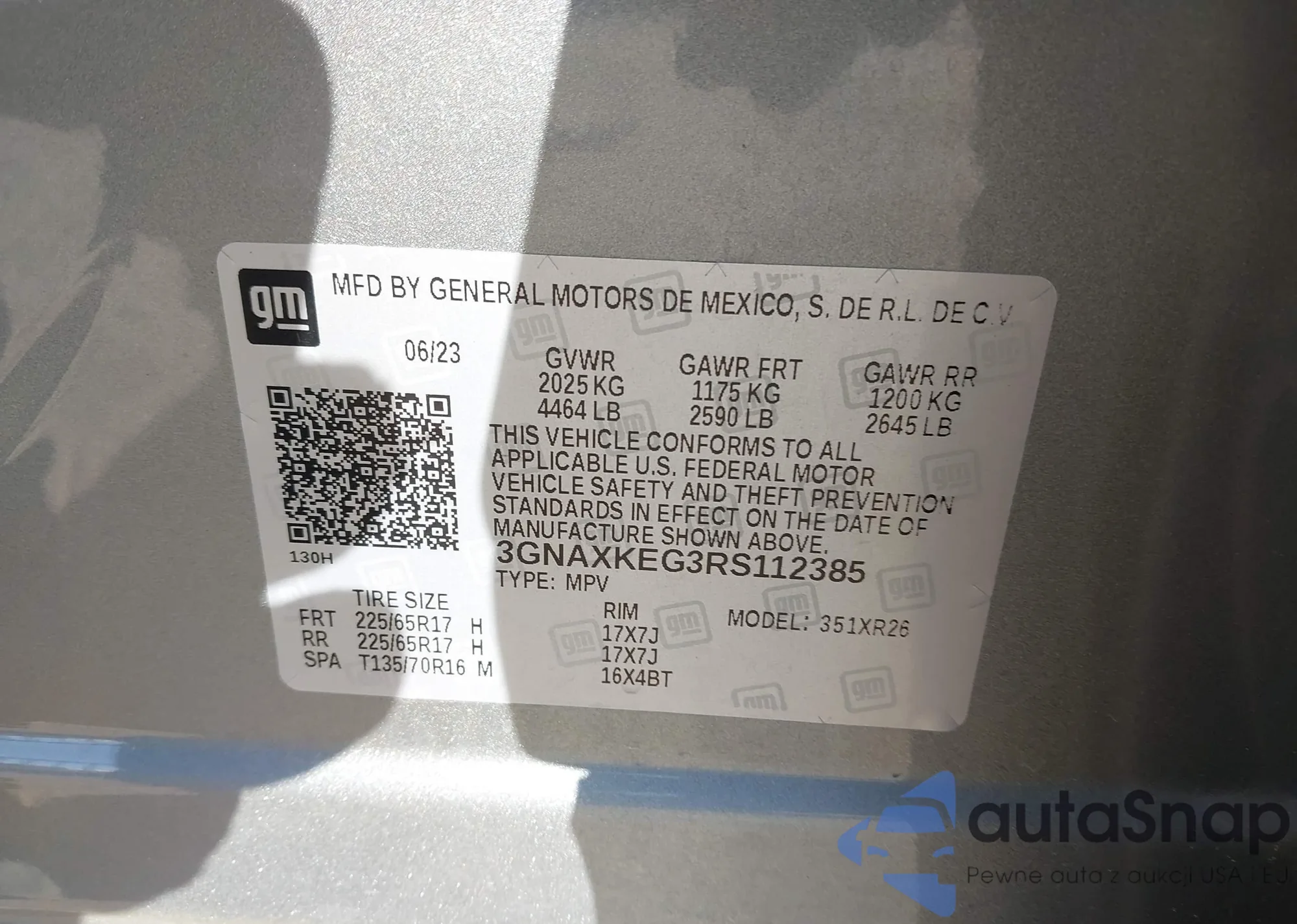 LOT: 43456242 VIN: 2CTFLTE52B6354303