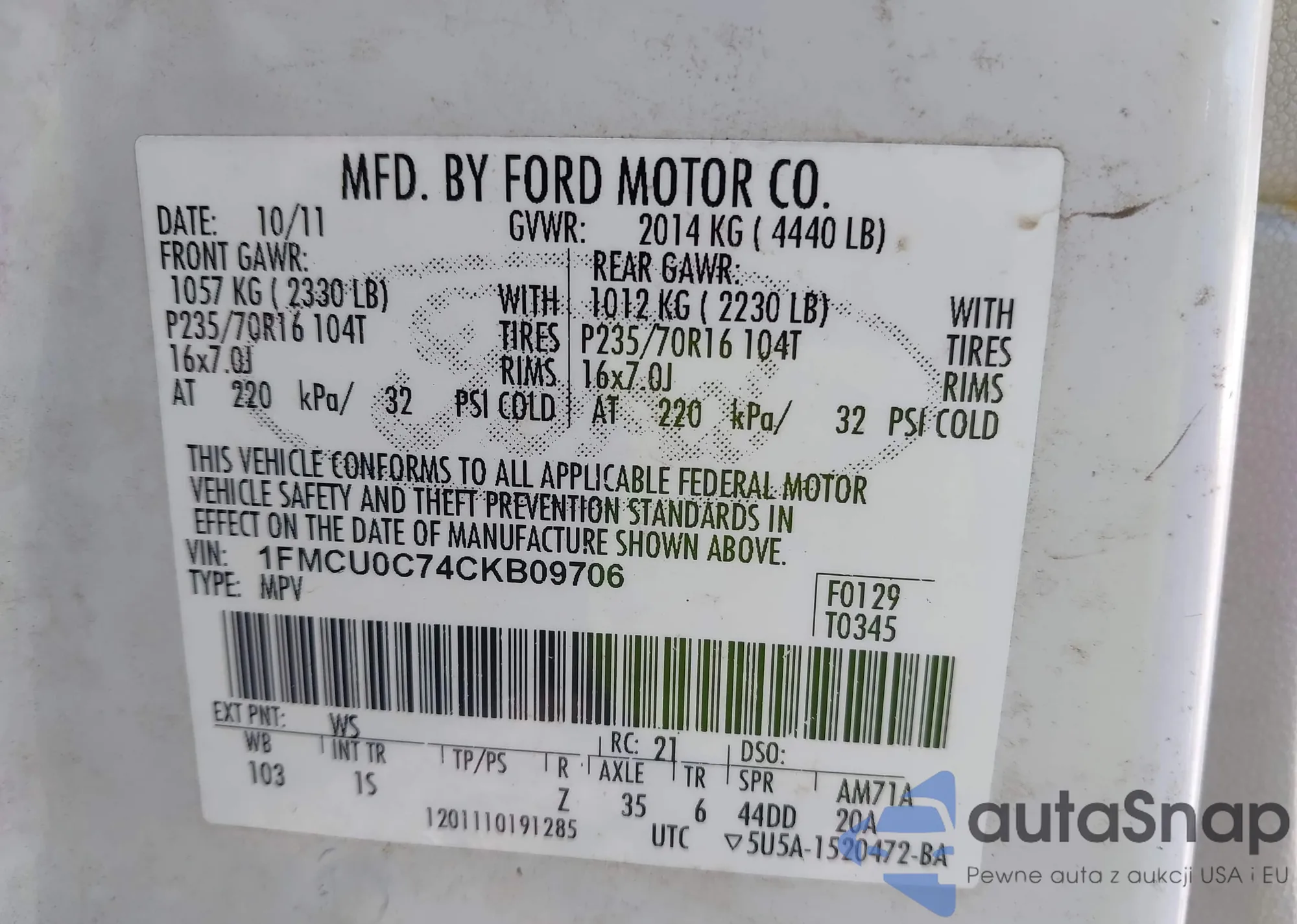 LOT: 43438938 VIN: 1FATP8UH8N5105666