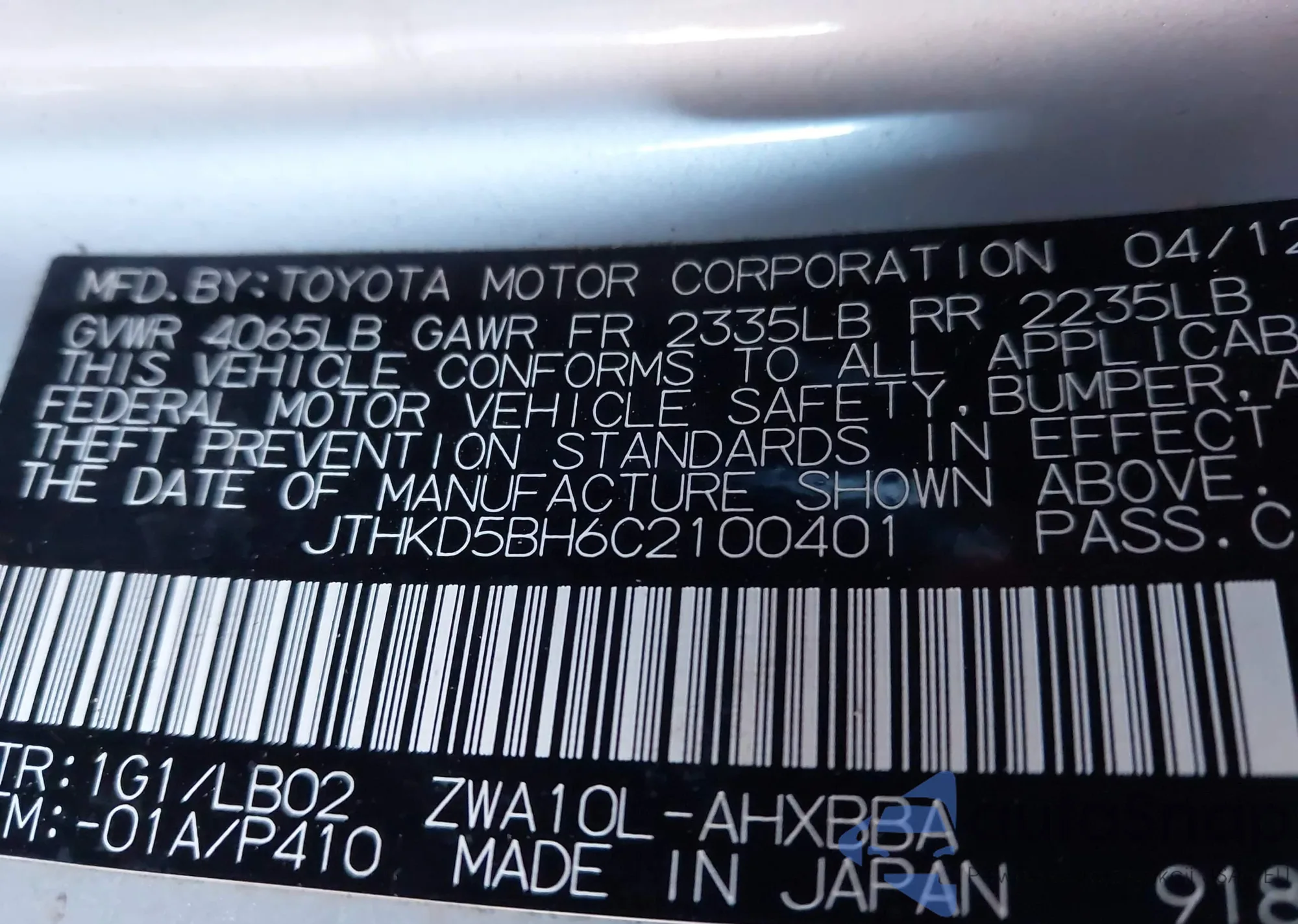 LOT: 43974972 VIN: 3FAHP0JA4CR202744