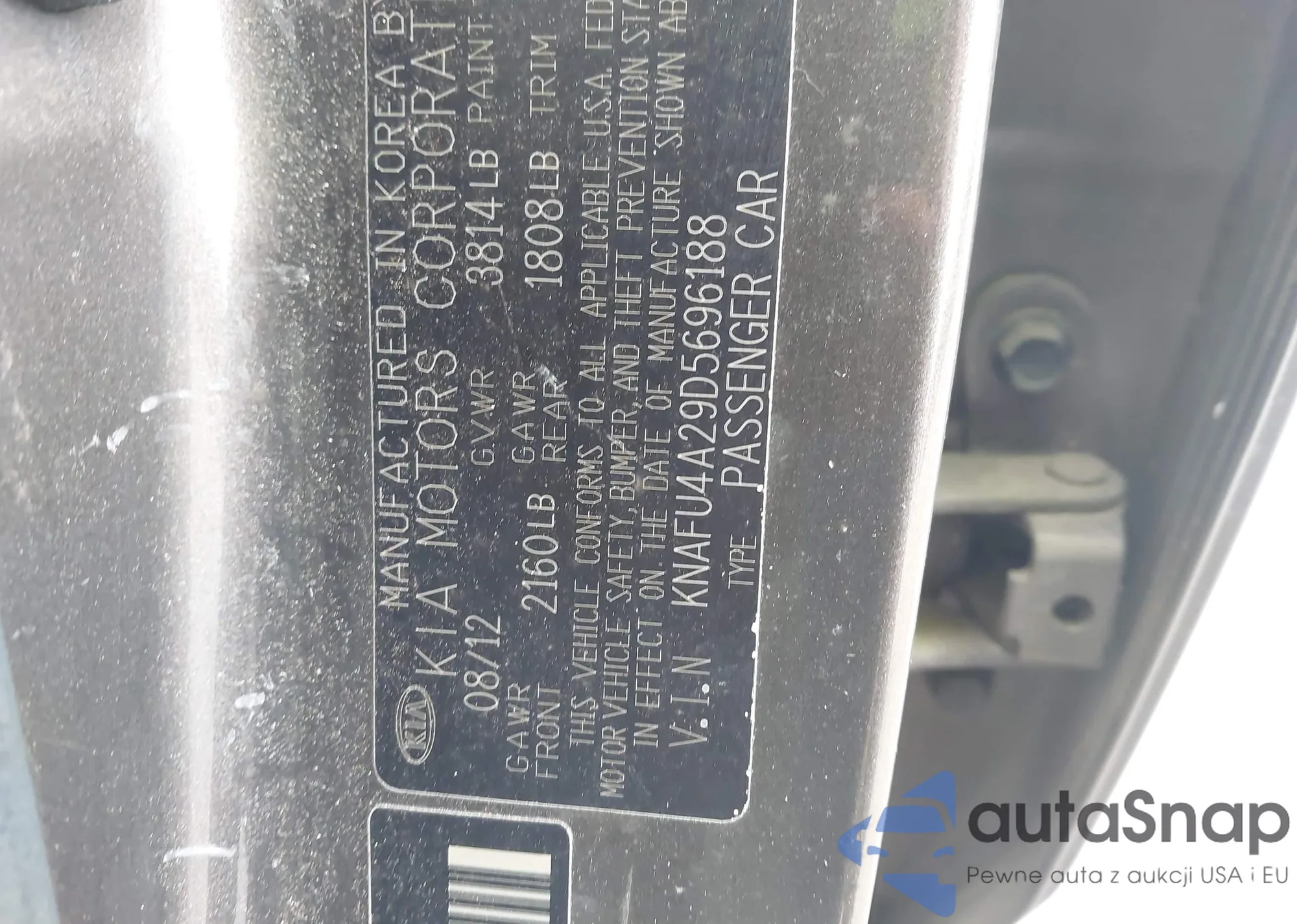 LOT: 43812518 VIN: KNAFU4A29D5696188