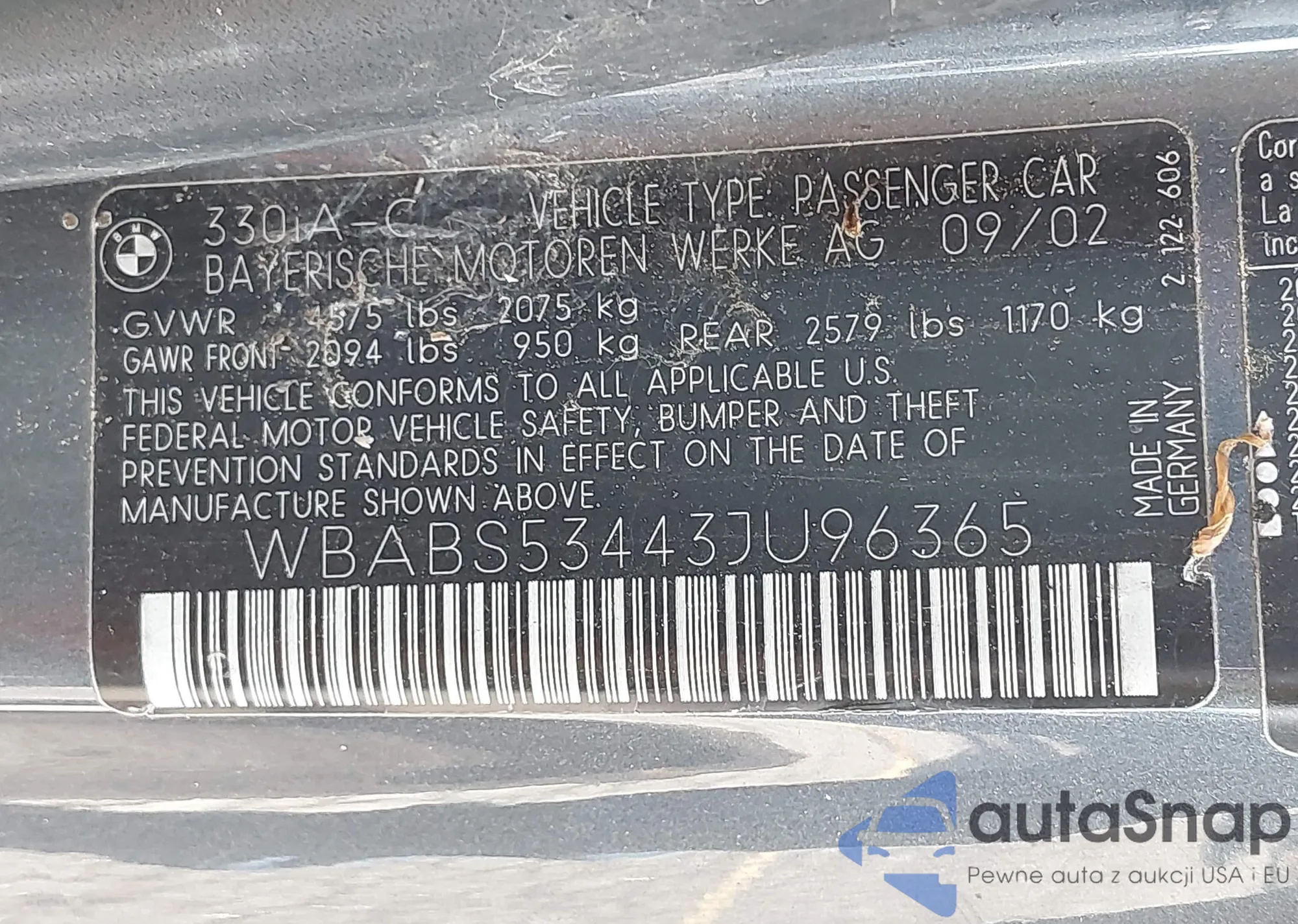 • VIN WBABS53443JU96365