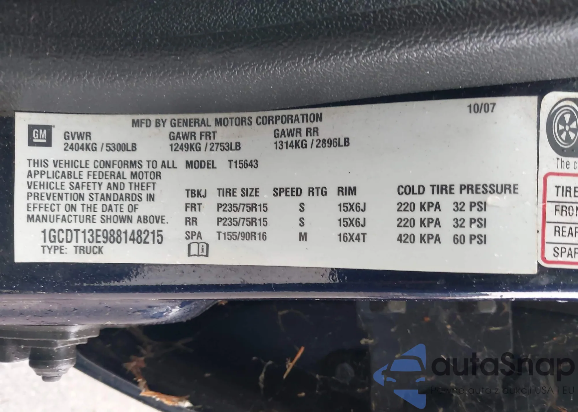 LOT: 43577712 VIN: 1GNFC13097R178294