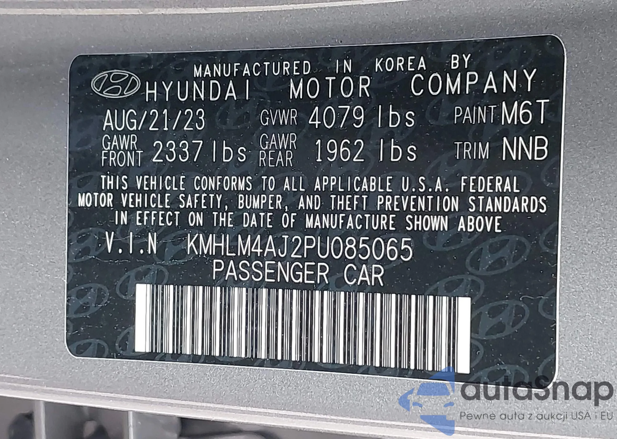 LOT: 43351576 VIN: KMHLM4AJ2PU085065