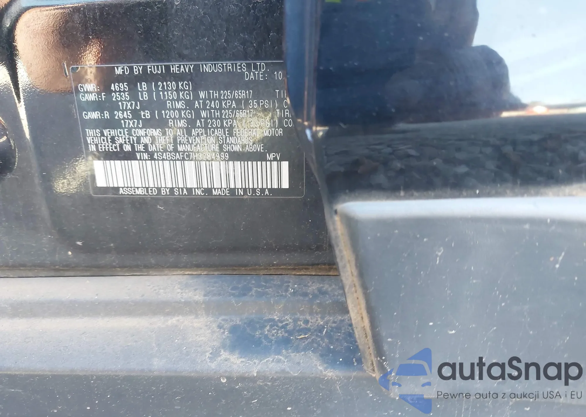 • VIN 4S4BSAFC7H3284999