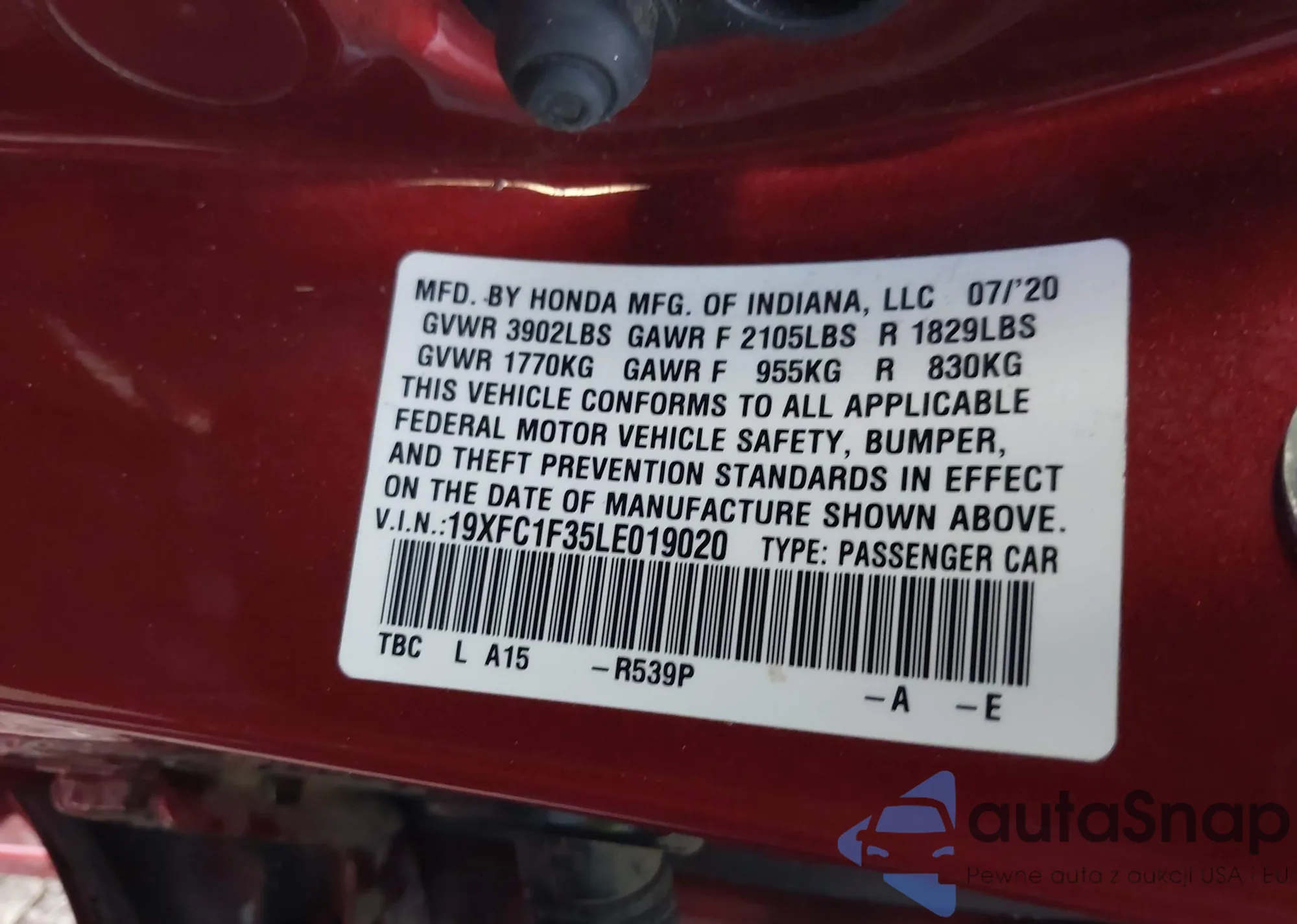 • VIN 1HGCV1F35MA058922