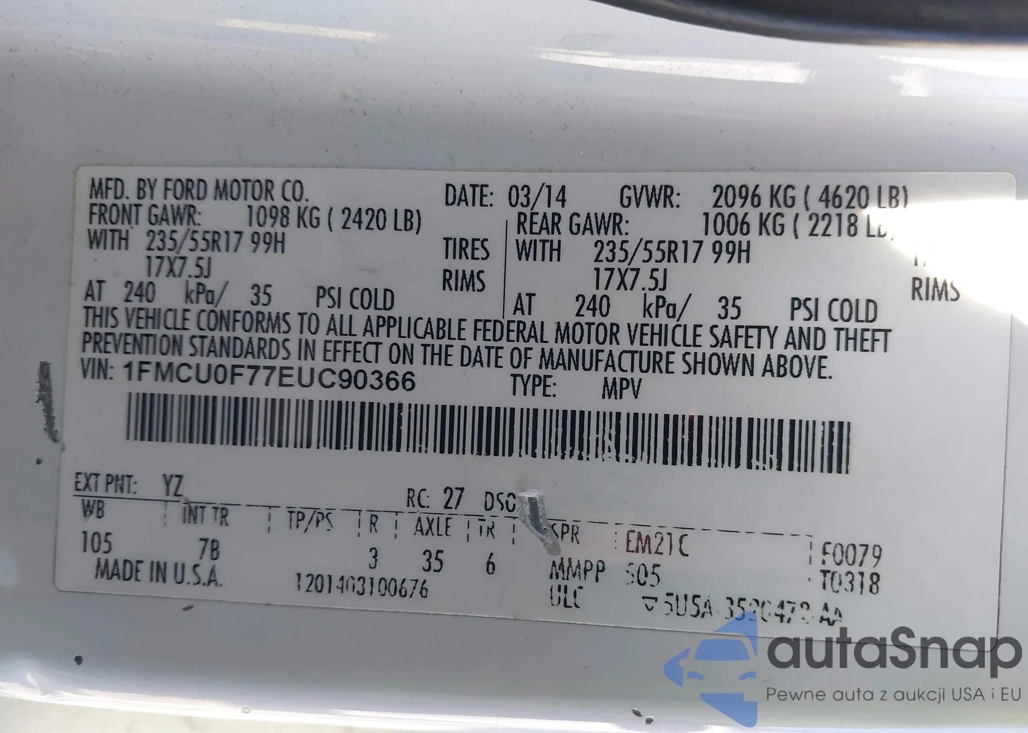 LOT: 43812648 VIN: 1FMCU0F77EUC90366