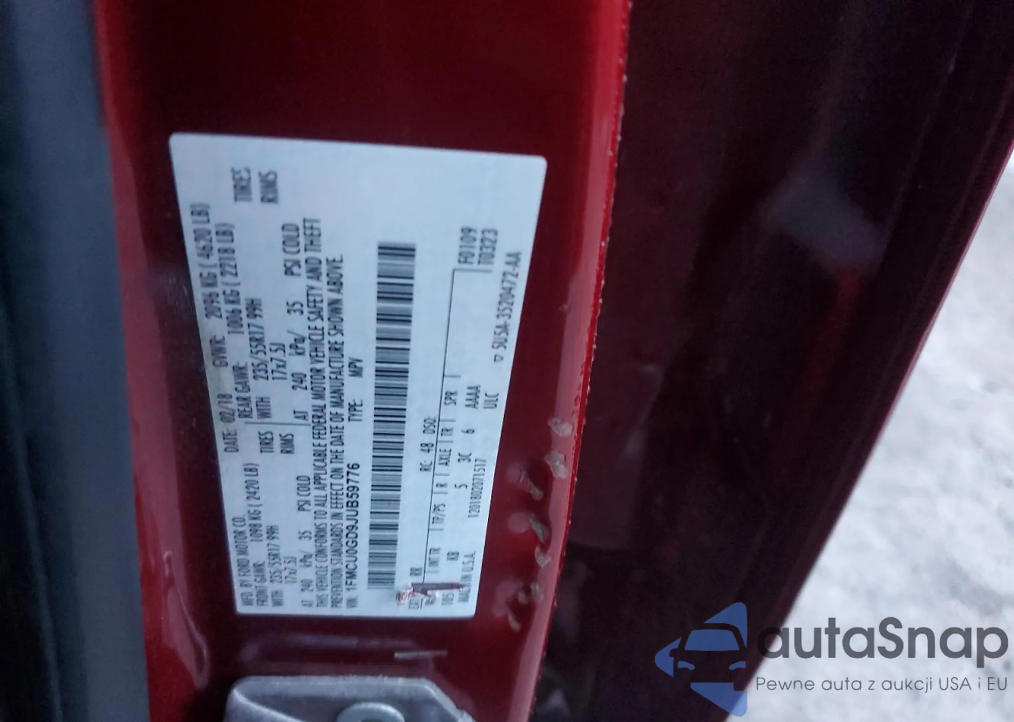 • VIN 1FMCU9J92EUC55005