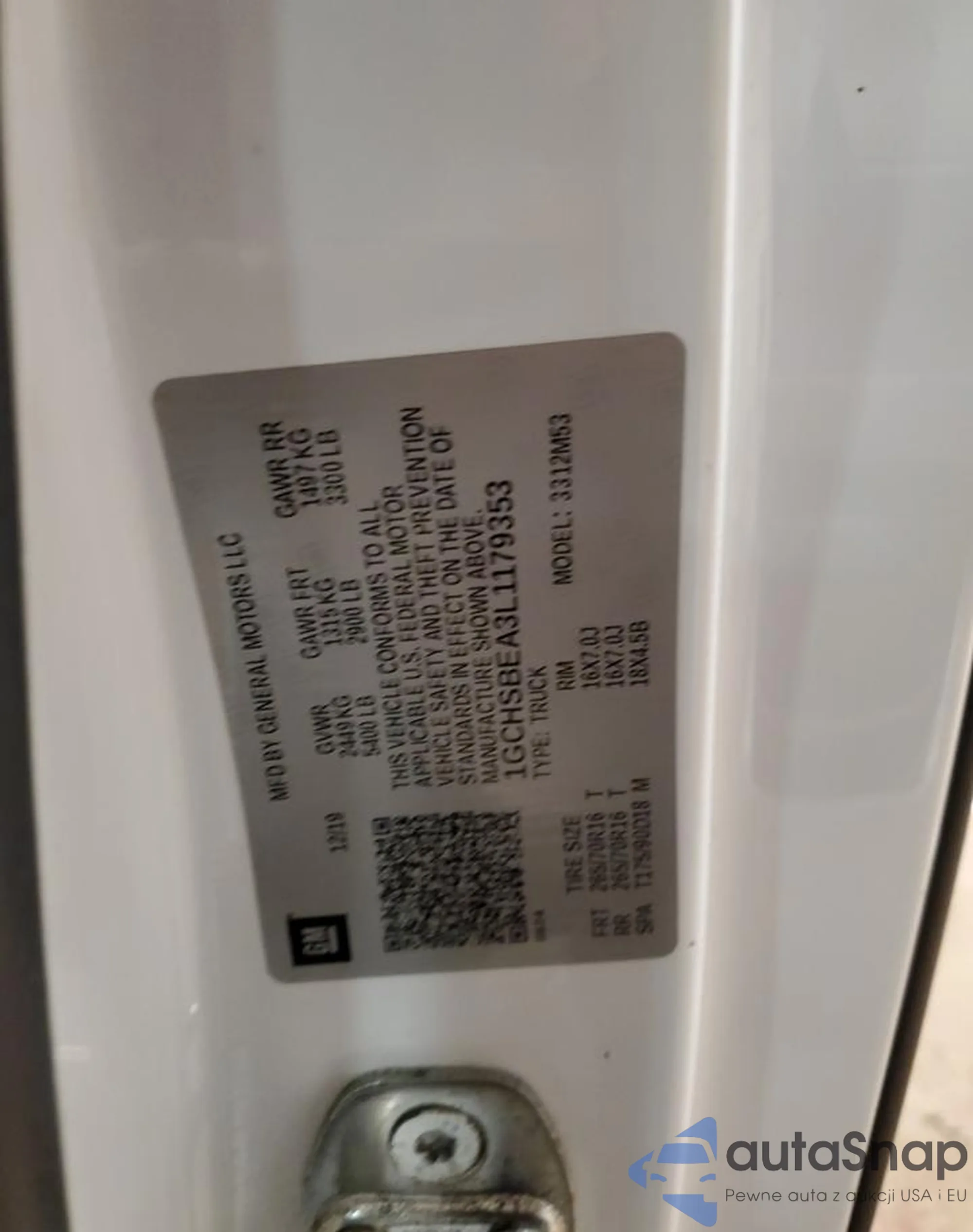 LOT: 87376945 VIN: 1GCGSCEN7K1180234