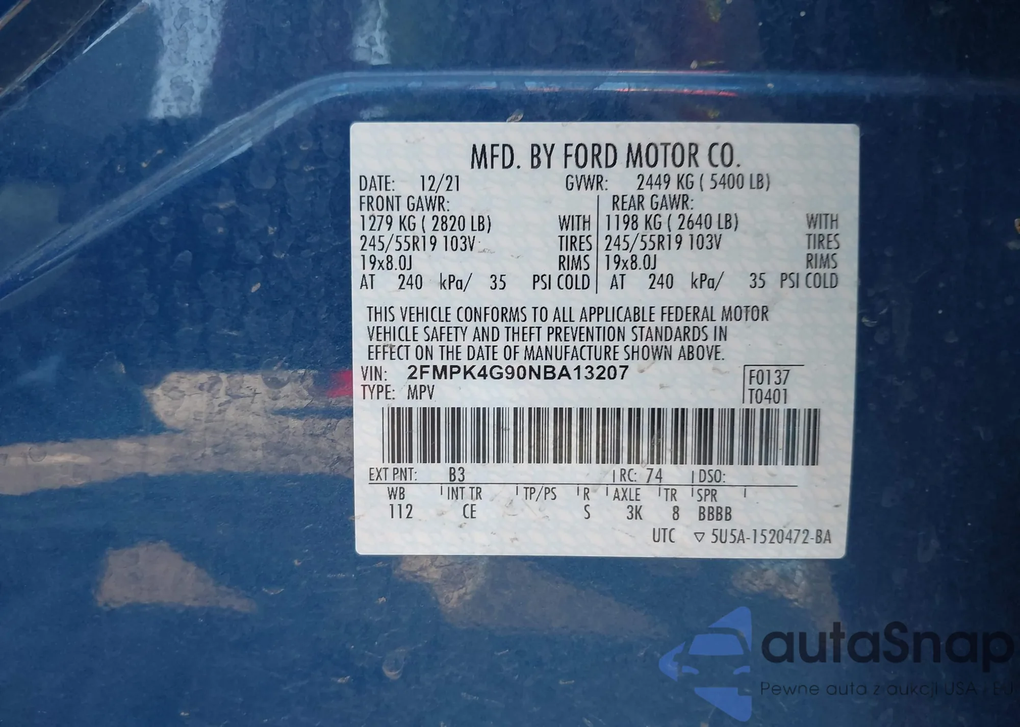 • VIN 2FMPK4G90NBA13207