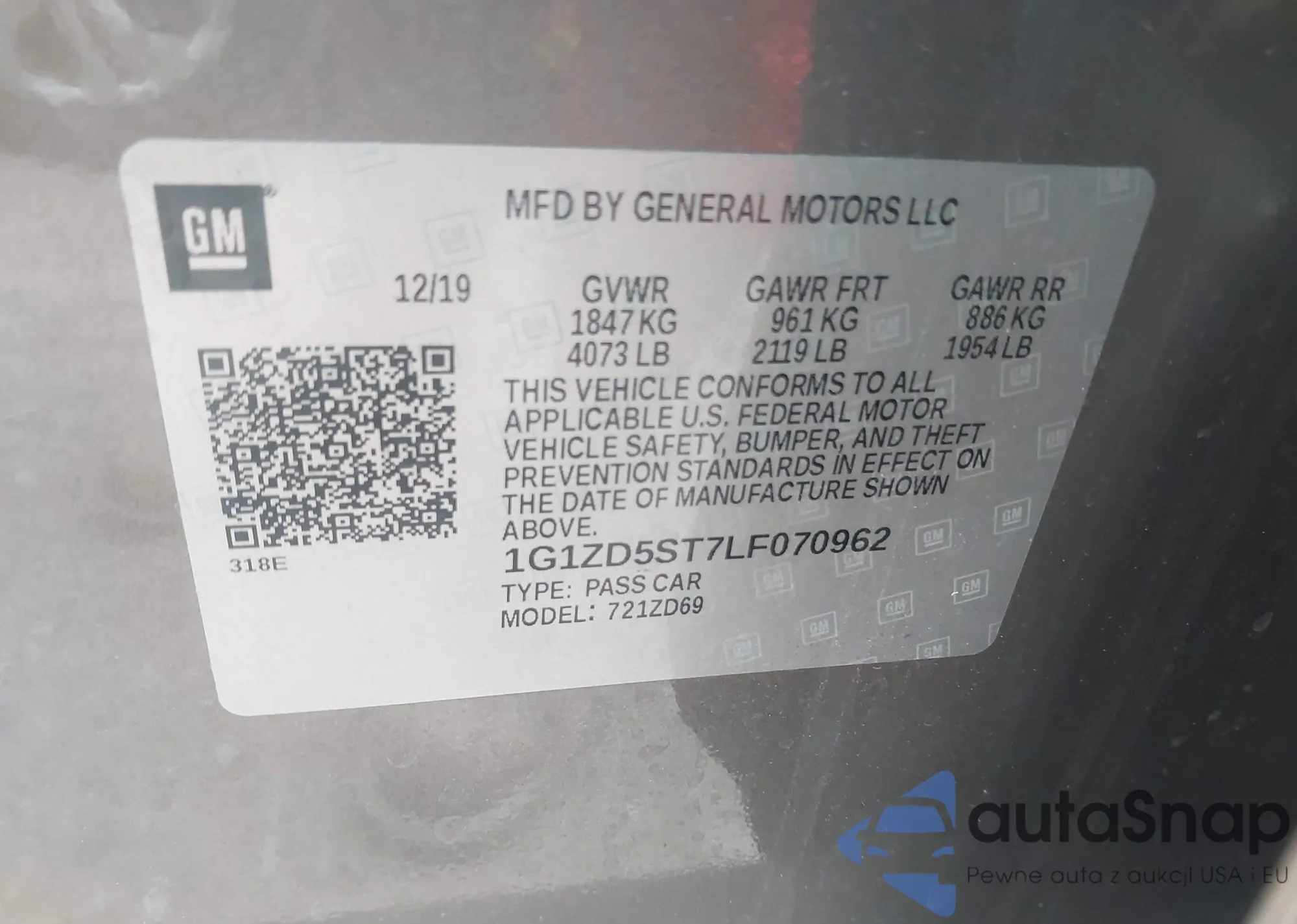 • VIN 1G1ZD5ST7LF070962