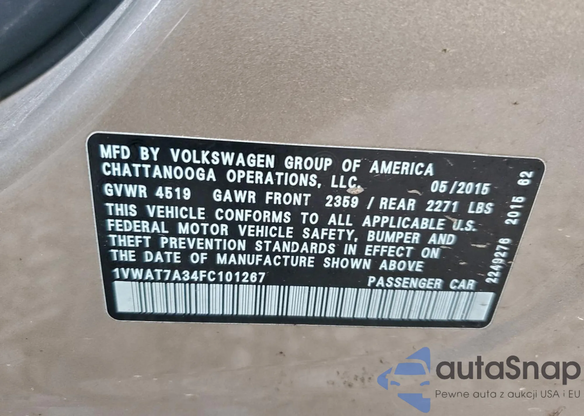 • VIN 1VWAT7A34FC101267