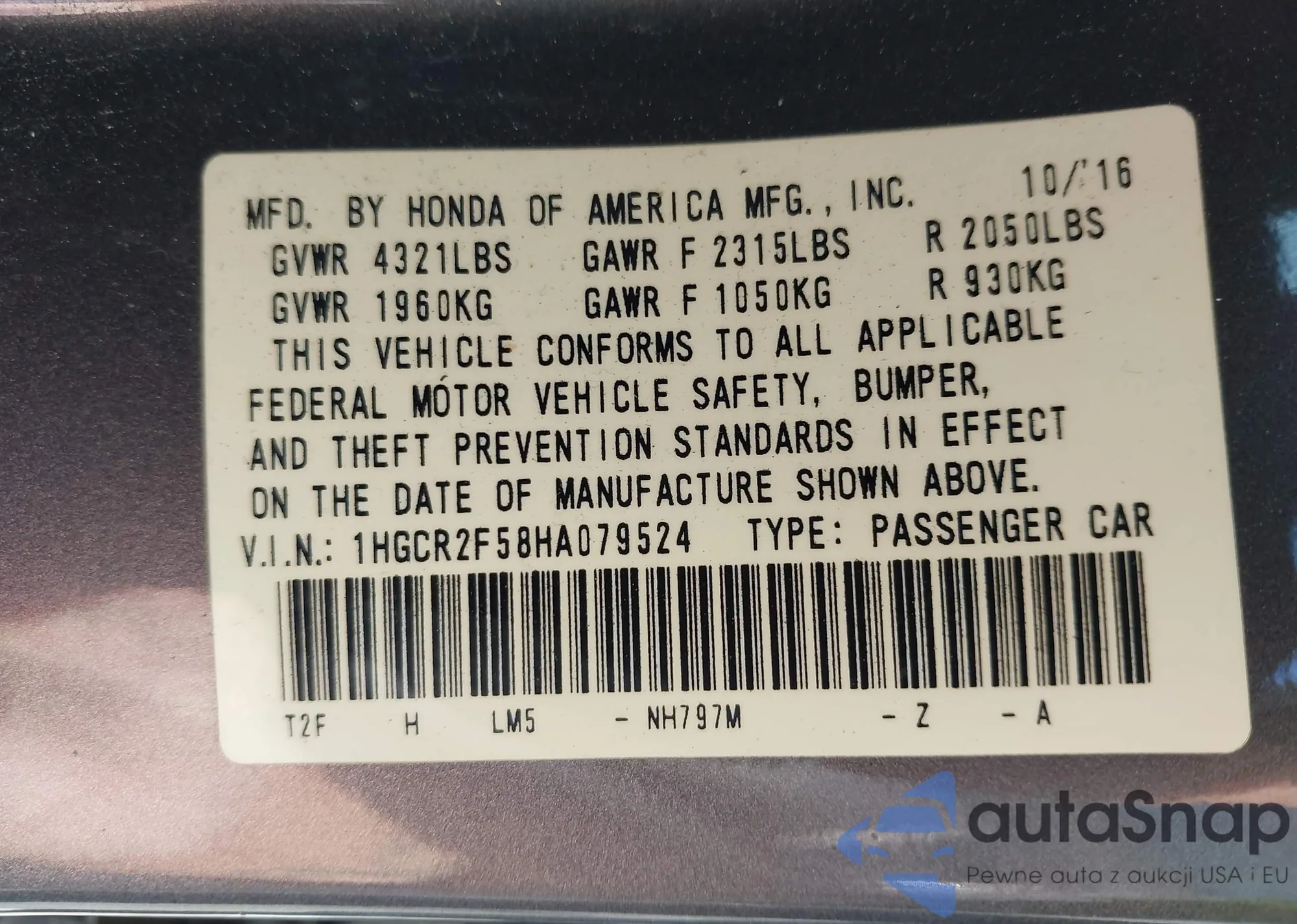 • VIN 2HGFE1E5XRH472769