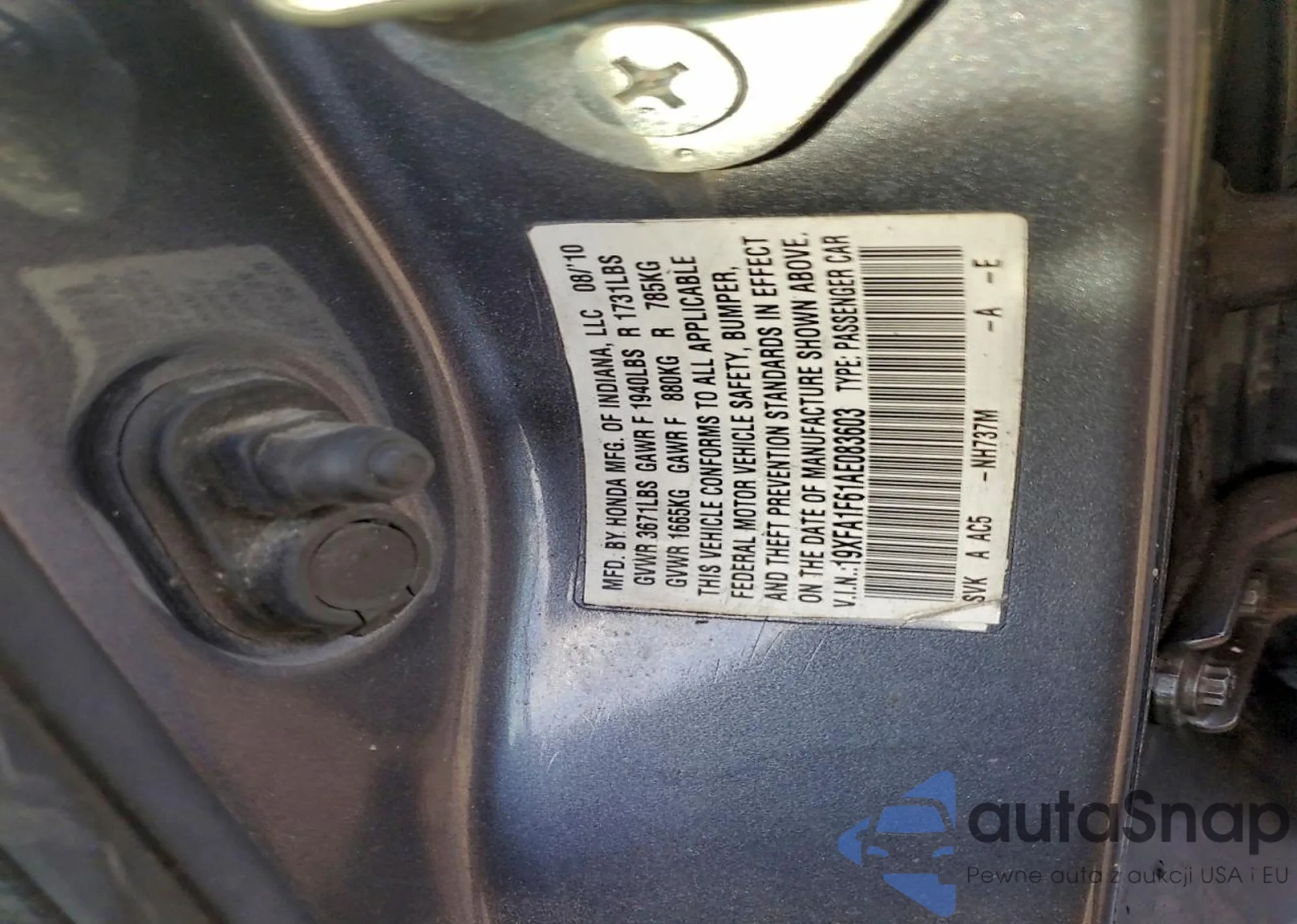 • VIN 19XFA1F61AE083603