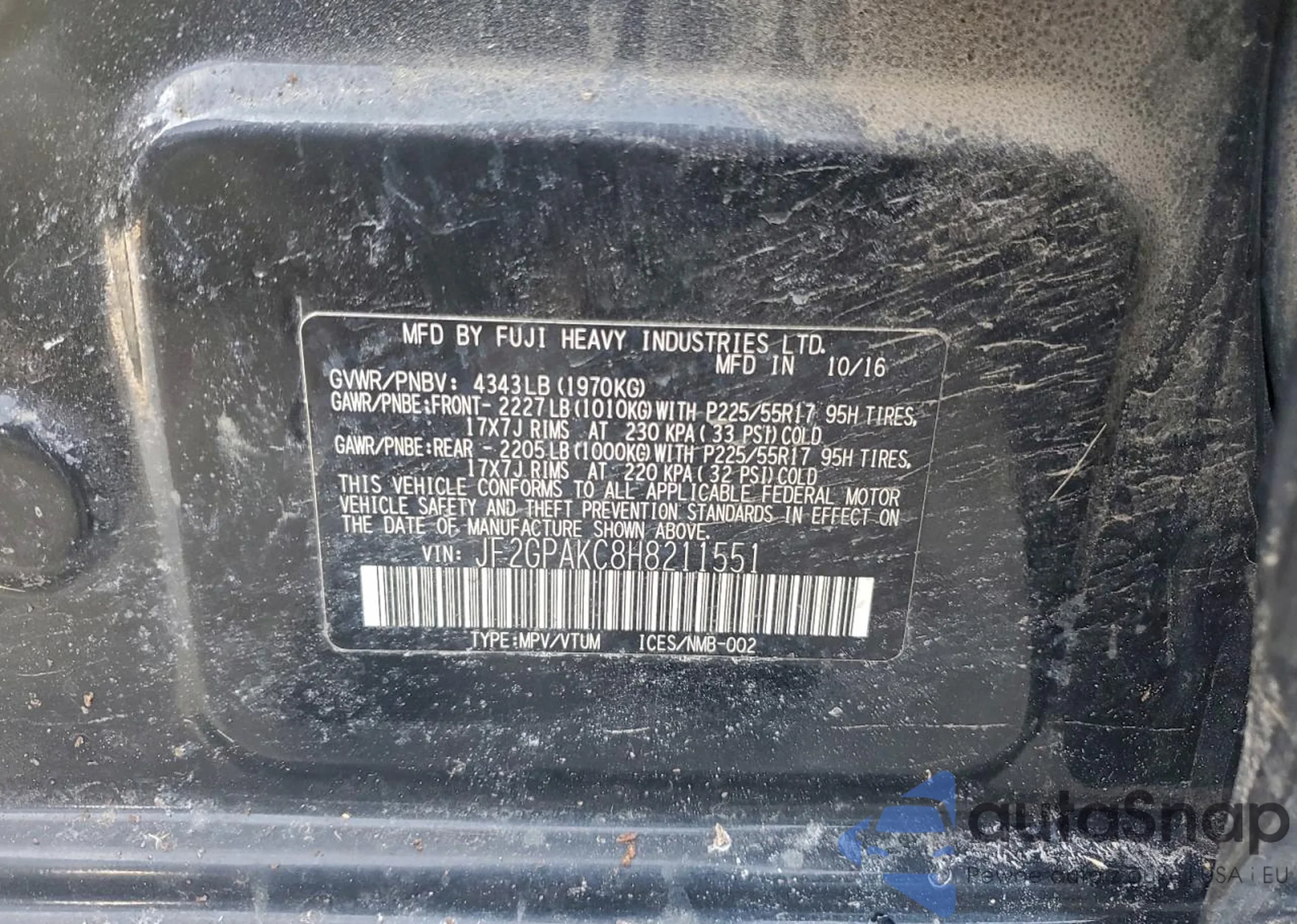 • VIN JF2GPAKC8H8211551