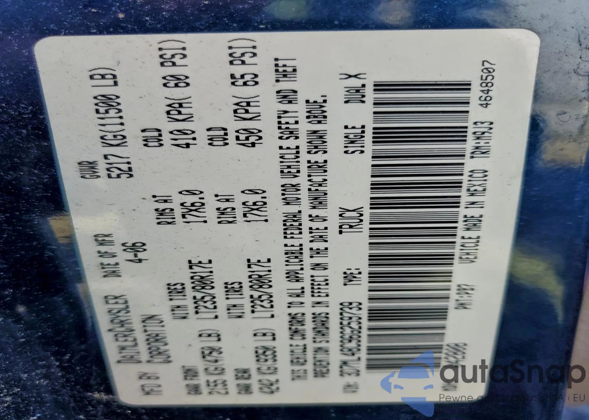 • VIN 3D7ML48C96G259739