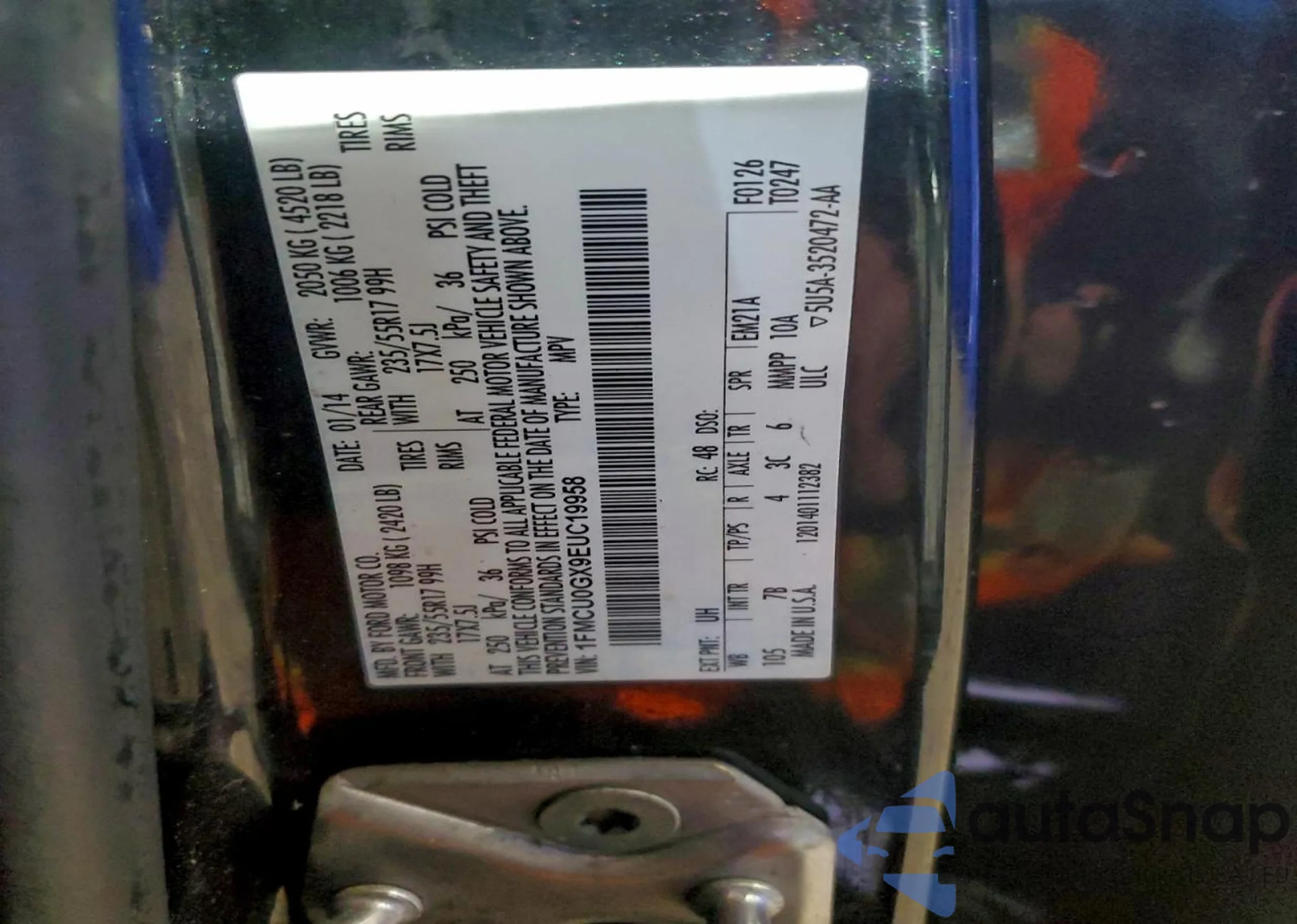 • VIN 1FMCU0GX9EUC19958