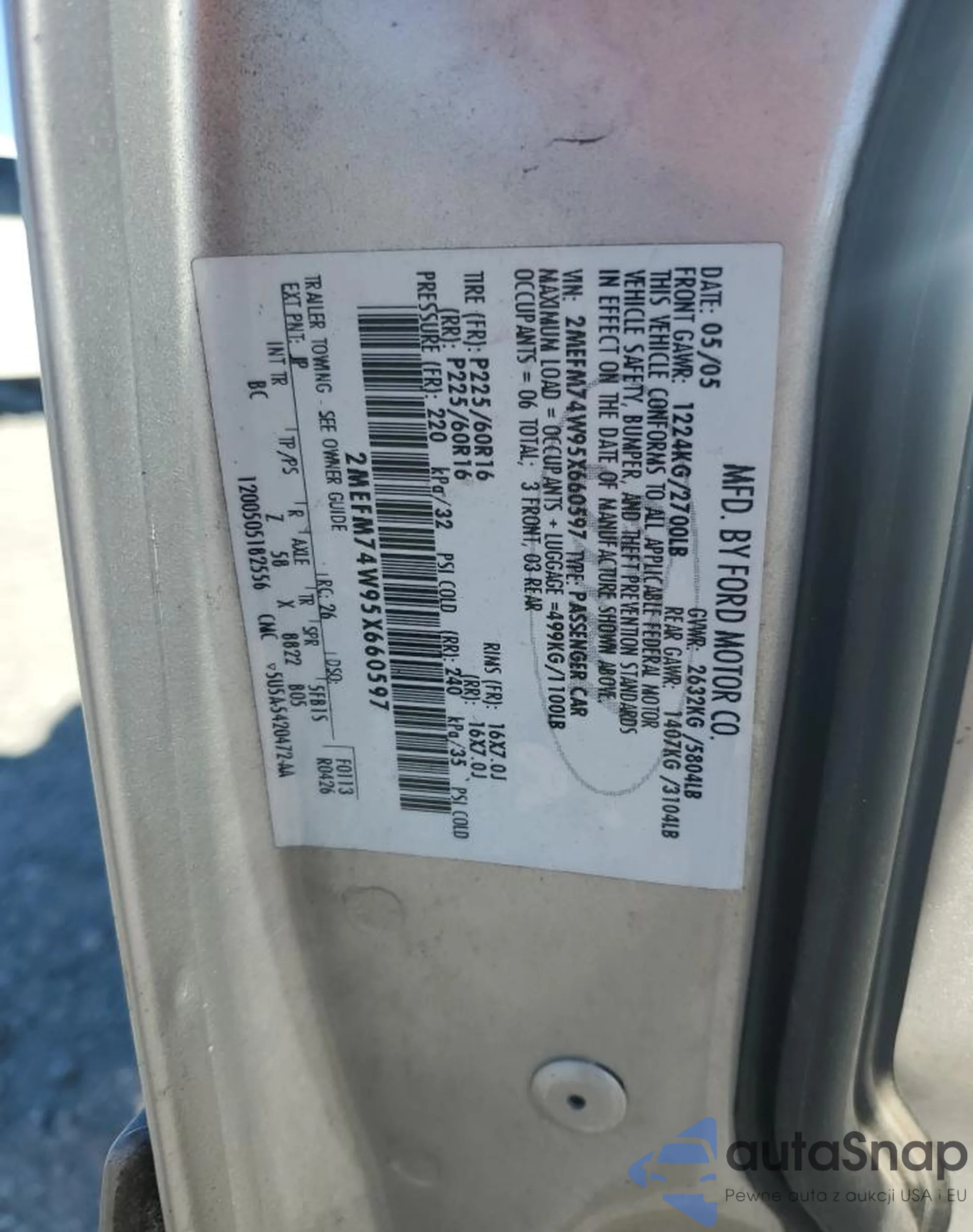 LOT: 89587335 VIN: 2MEFM74W95X660597