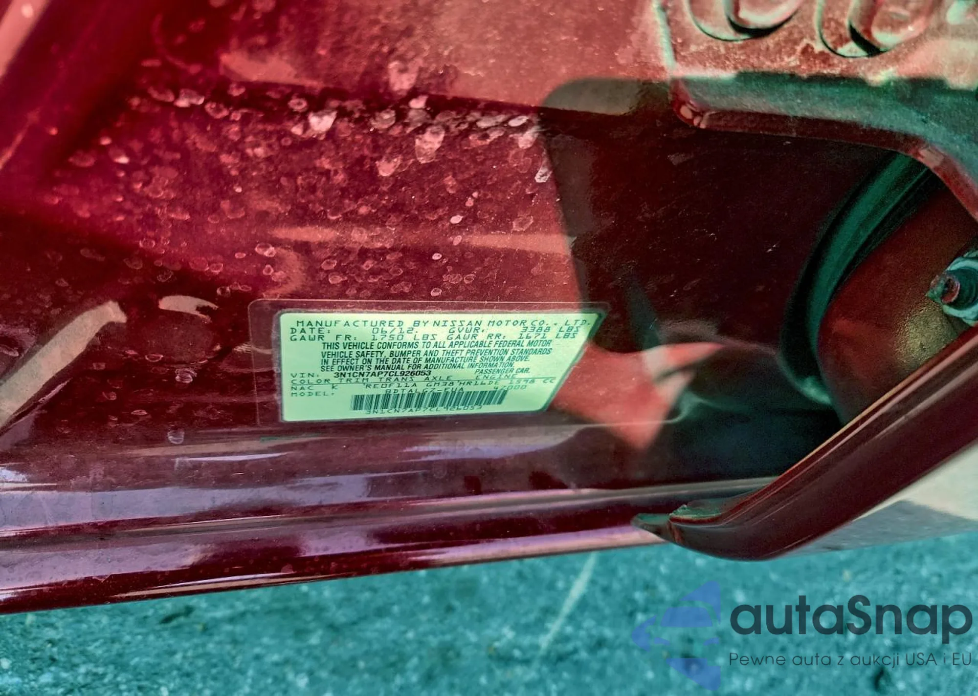 • VIN 3N1CN7AP7CL926053