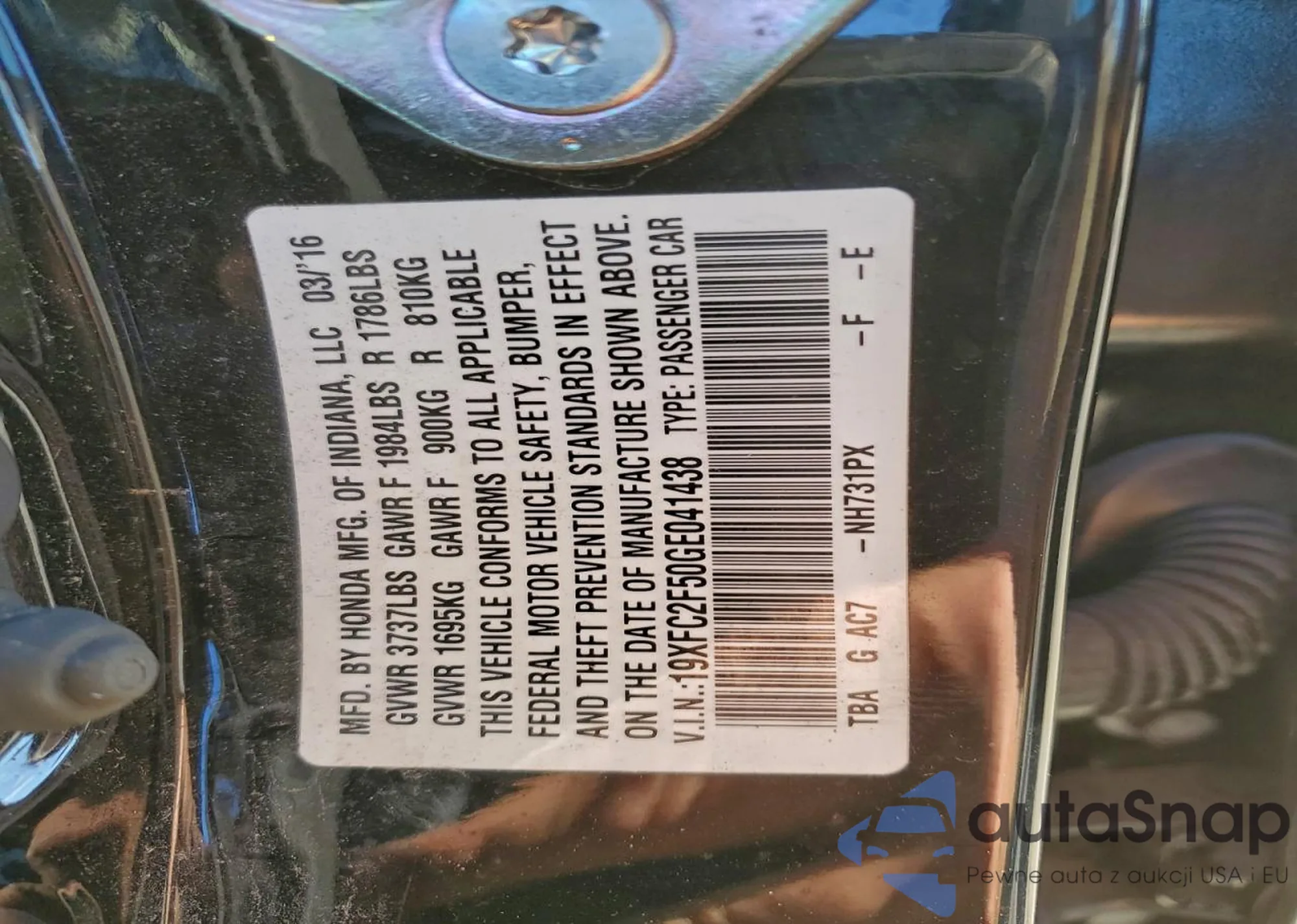 • VIN 19XFC2F50GE041438
